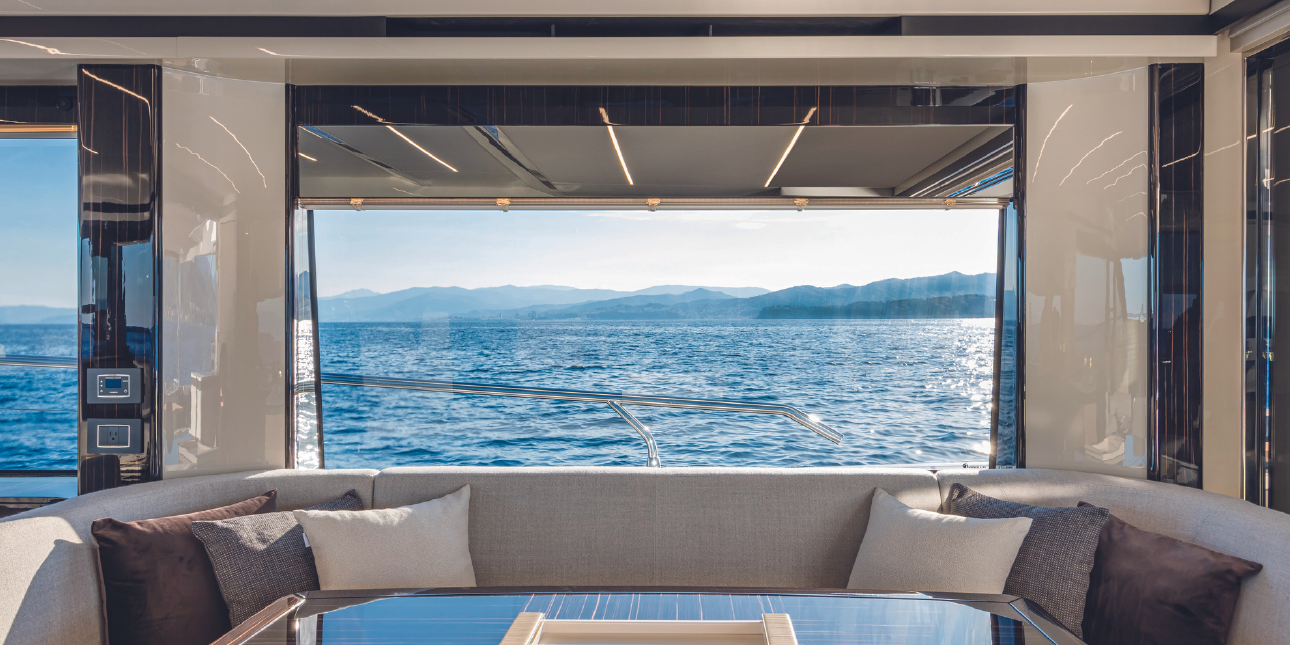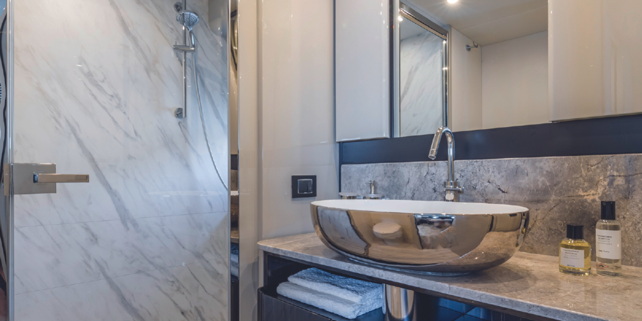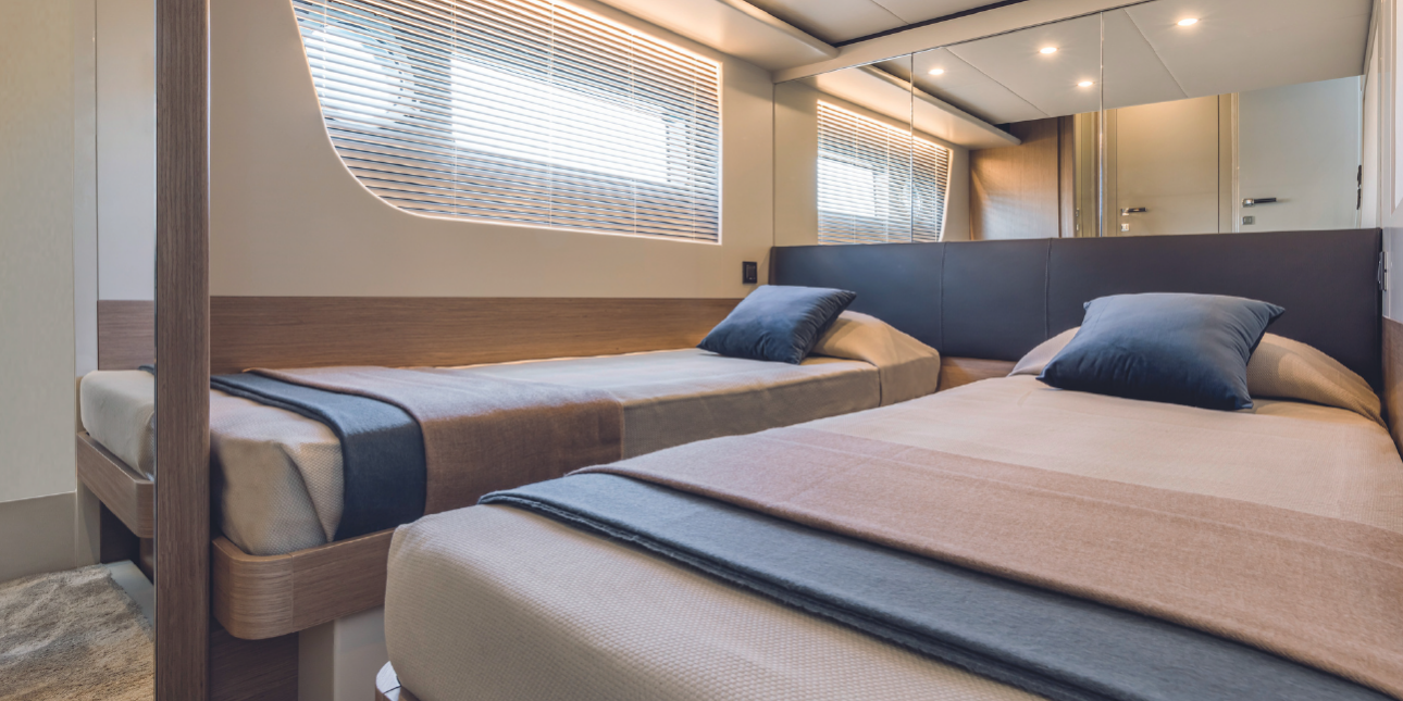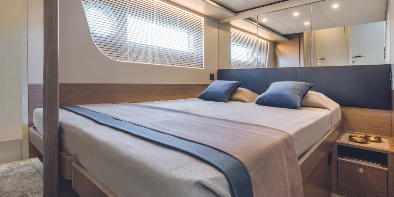 Seakeeper – Tropical air conditioning – Hydraulic platform – 3 bathrooms + 1 – 3 cabins + 1 – Drink box – Towels – Skipper & hostess.