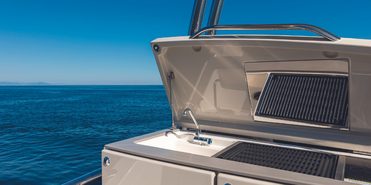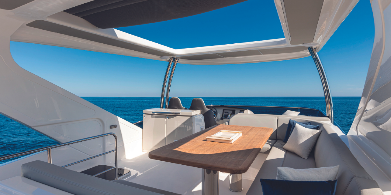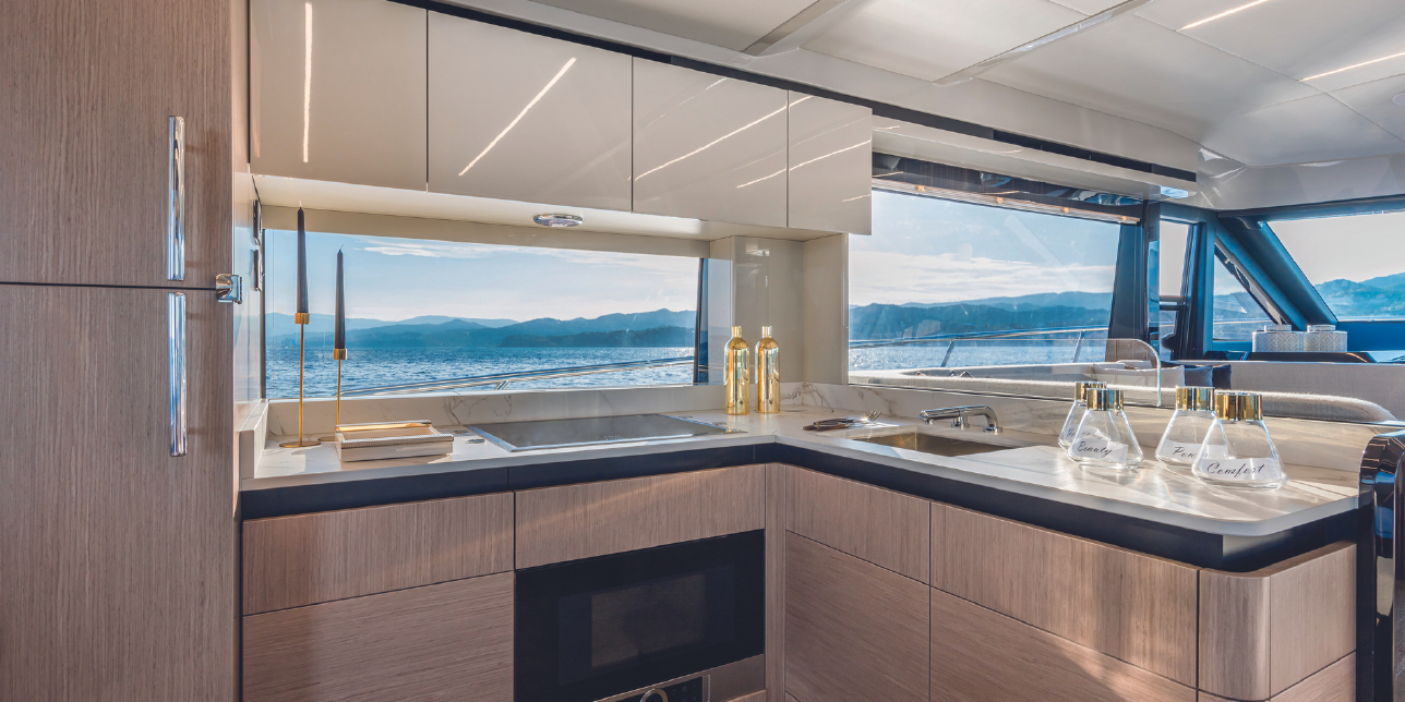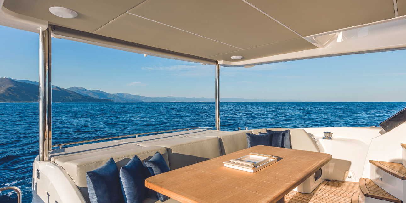 Seakeeper – Tropical air conditioning – Hydraulic platform – 3 bathrooms + 1 – 3 cabins + 1 – Drink box – Towels – Skipper & hostess.