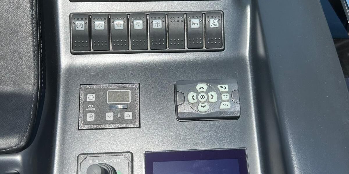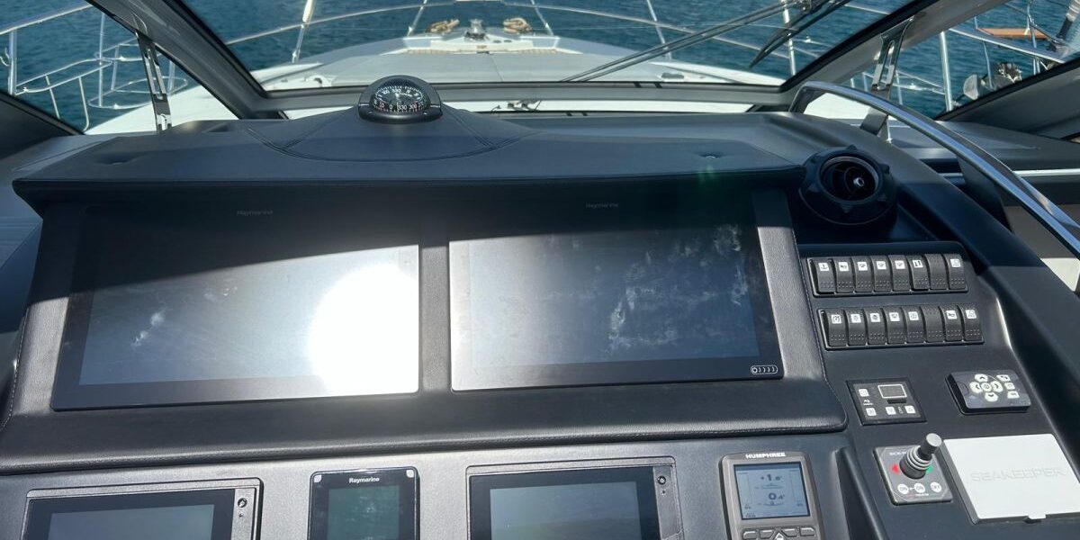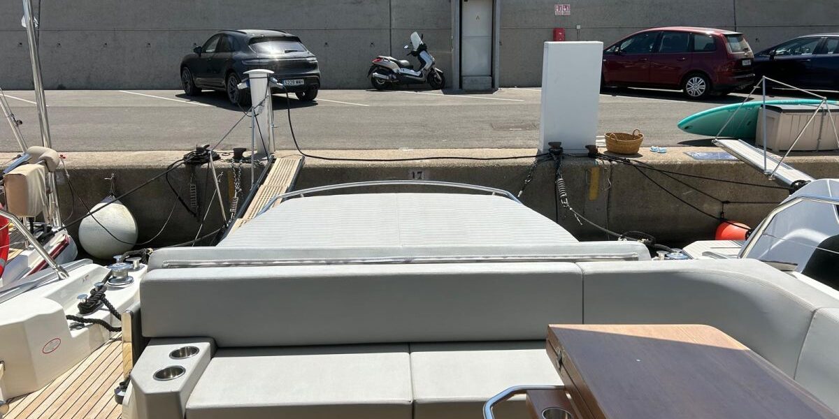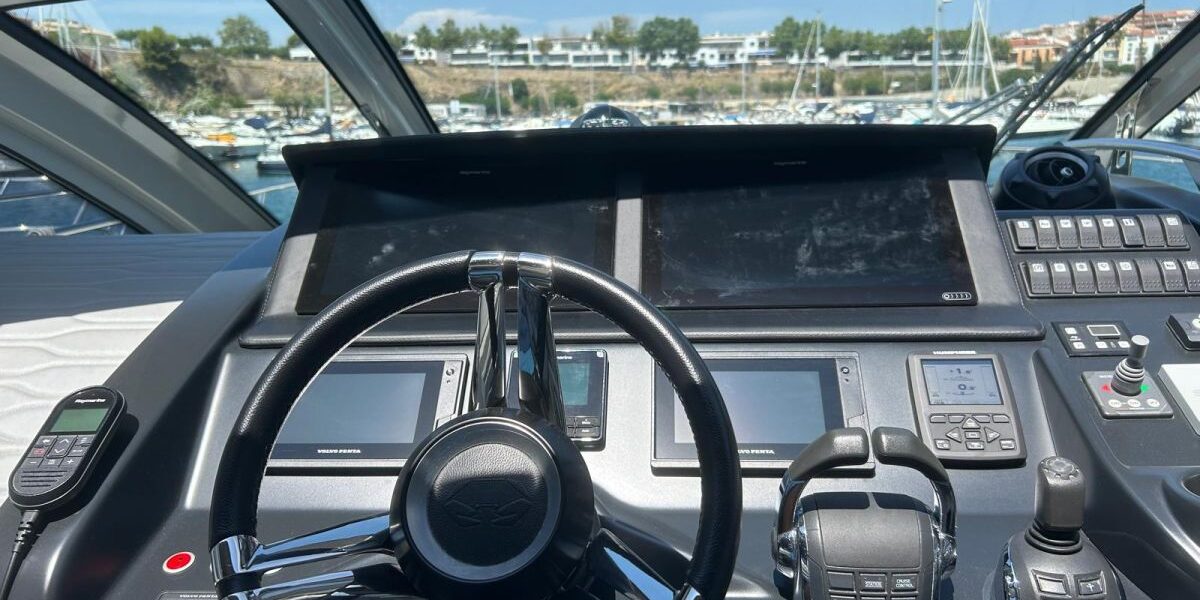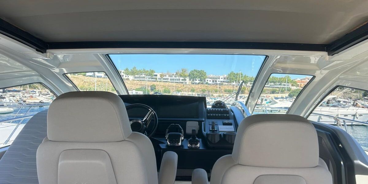 Hard top negro – Kit molinete para varada neumática auxiliar – Sistema de mandos Joystick – Dirección electrónica y mandos motores electrónicos – Aire acondicionado 48.000 BTU en camarotes y 24.000 BTU en bañera, con bomba de calor – Camarote de marinero con WC y lavabo – Capota cámper – Solárium de popa con funda – Cajafuerte electrónica – Correctores de planeada Automatic Trim Control – Hélice de proa – Faro pirata – Suplemento generador de 13 a 20 kW – Frigorífico en bañera 65 l – Barbacoa eléctrica en bañera – Máquina de hielo – Mesa bañera en teka – Luces de proa y luces subacuáticas – Pasarela hidráulica telescópica retráctil – Molinete eléctrico, cadena y ancla Ultramarine de inox – Radio Bluetooth/USB en salón – Radio Bluetooth/USB en cabina armador – Radio Bluetooth/USB en bañera y a proa – Estabilizador giroscópico Seakeeper 6 – Plataforma de popa hidráulica – Bañera, plataforma de popa y trancaniles en teka – Cortina eléctrica parasol de popa – TV LED 28″ en bañera con dispositivo eléctrico retráctil – 2 Molinetes de popa para amarre – Toma de puerto 220 V – Suelo interior de roble – Horno combinado con microondas – Lavavajillas – Encimera vitrocerámica con 4 fuegos – Tapicería exterior Silvertex color plata – Casco, plataforma, parte de la cubierta y garaje de color gris medusa – 2 GPS/Plotter – VHF – Ecosonda (temperatura y profundidad) – Piloto automático – 2 Camarotes dobles y 1 camarote individual – 2 Baños completos – Depósito de aguas negras – Calentador de agua 40 l – Cargador de baterías – Flaps de lamas Interceptor Humphree – Ducha de popa y de proa – Antifouling.