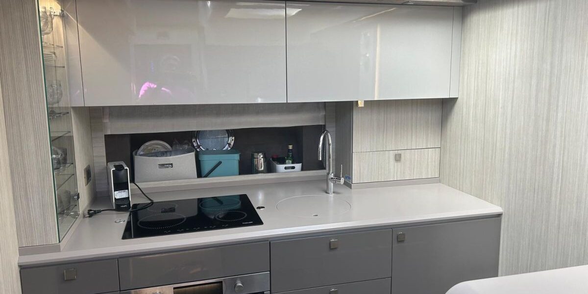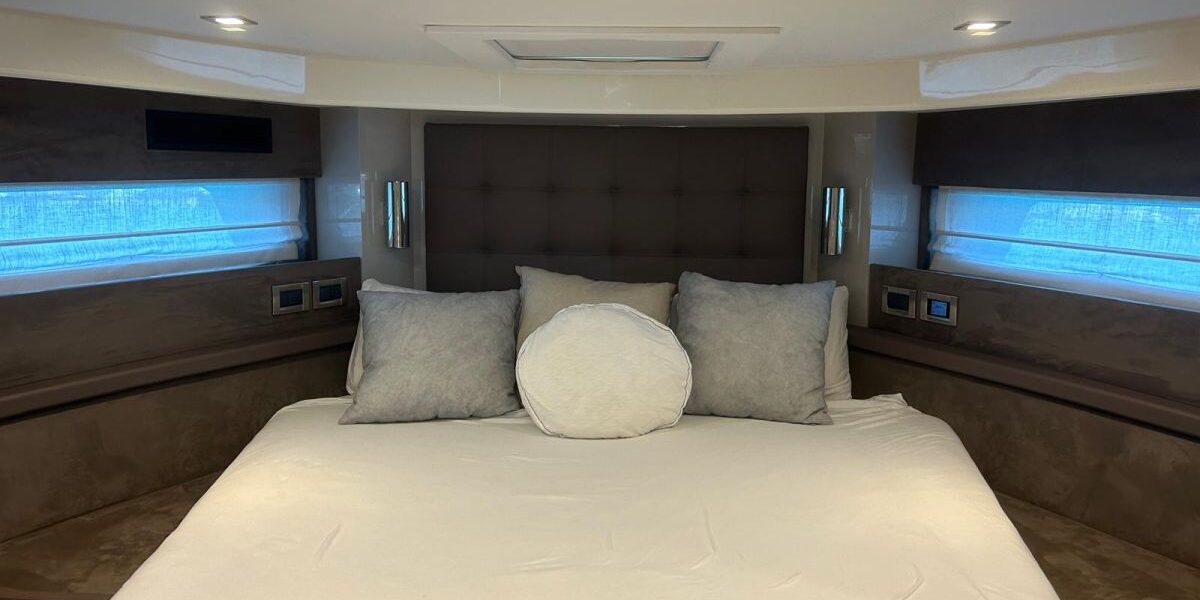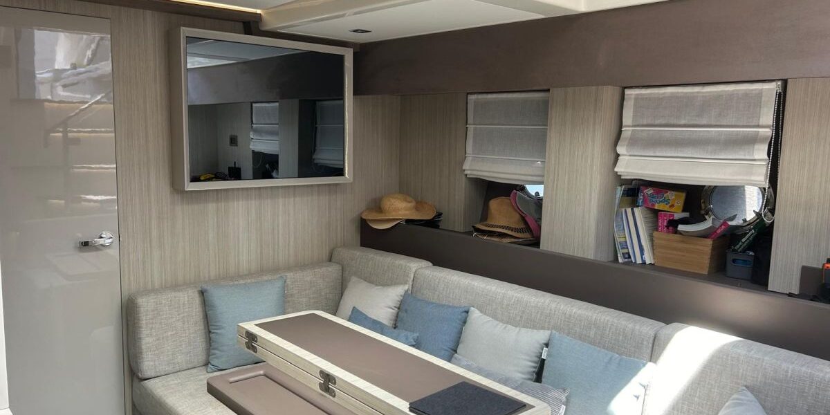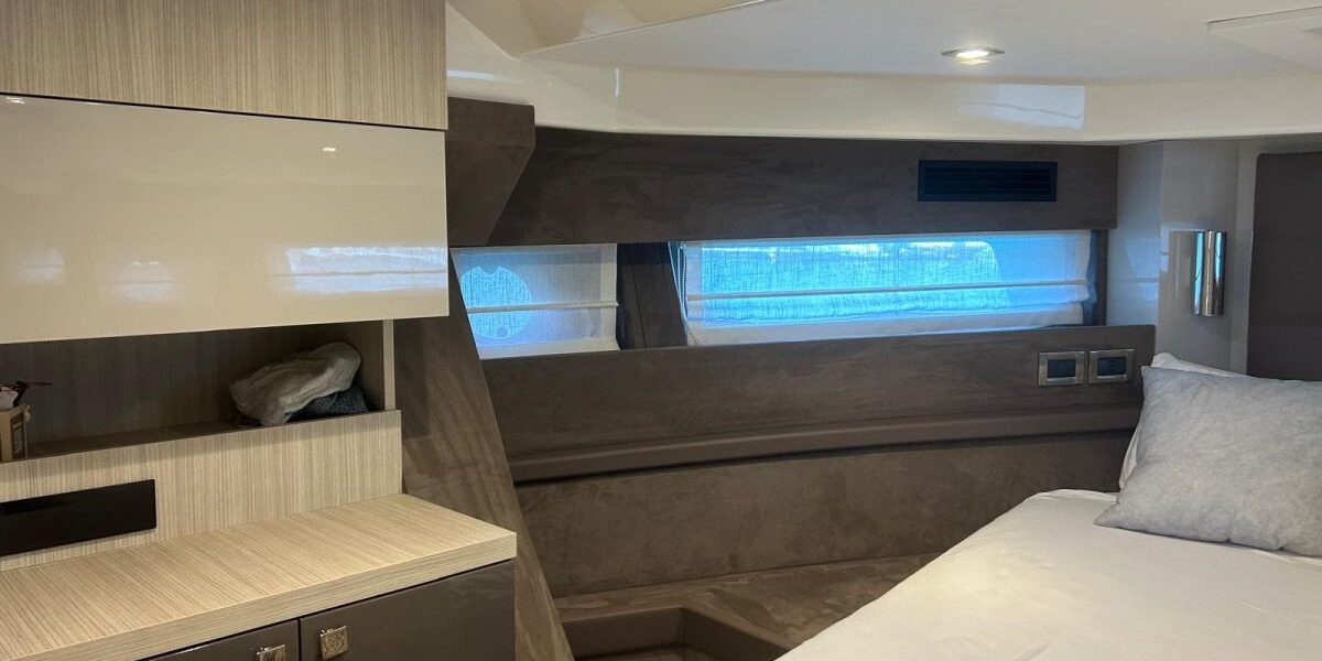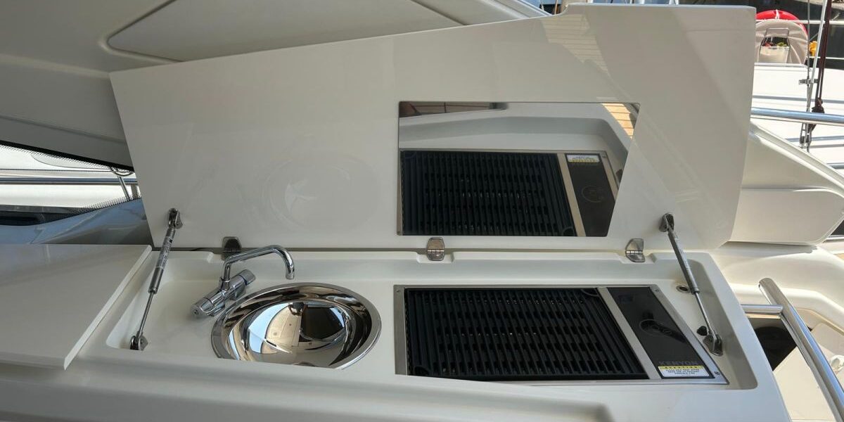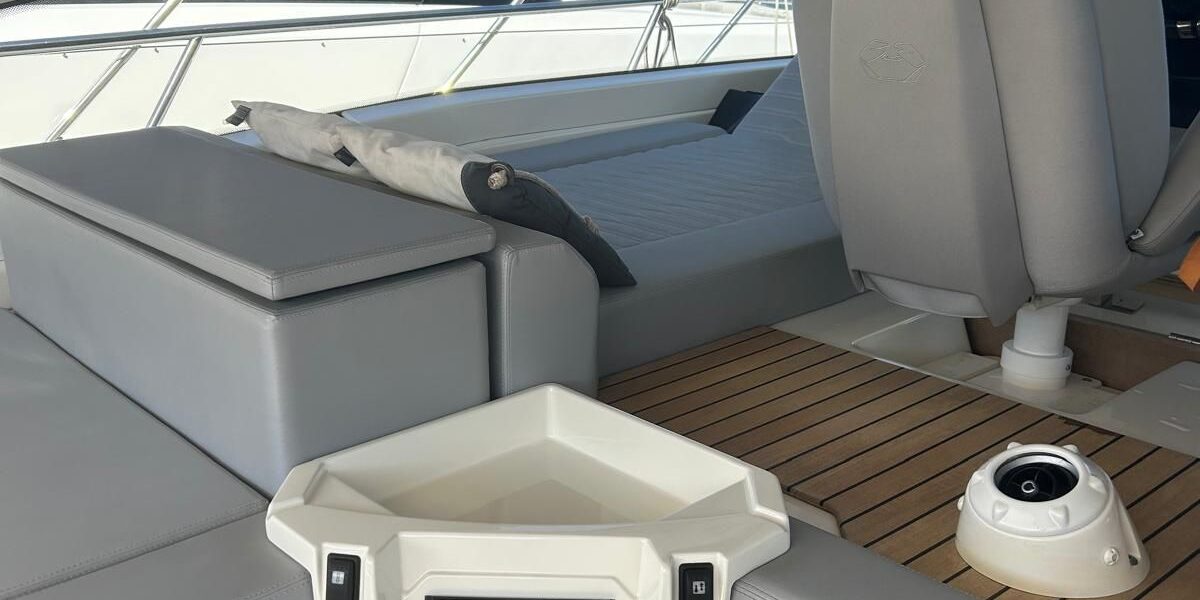 Hard top negro – Kit molinete para varada neumática auxiliar – Sistema de mandos Joystick – Dirección electrónica y mandos motores electrónicos – Aire acondicionado 48.000 BTU en camarotes y 24.000 BTU en bañera, con bomba de calor – Camarote de marinero con WC y lavabo – Capota cámper – Solárium de popa con funda – Cajafuerte electrónica – Correctores de planeada Automatic Trim Control – Hélice de proa – Faro pirata – Suplemento generador de 13 a 20 kW – Frigorífico en bañera 65 l – Barbacoa eléctrica en bañera – Máquina de hielo – Mesa bañera en teka – Luces de proa y luces subacuáticas – Pasarela hidráulica telescópica retráctil – Molinete eléctrico, cadena y ancla Ultramarine de inox – Radio Bluetooth/USB en salón – Radio Bluetooth/USB en cabina armador – Radio Bluetooth/USB en bañera y a proa – Estabilizador giroscópico Seakeeper 6 – Plataforma de popa hidráulica – Bañera, plataforma de popa y trancaniles en teka – Cortina eléctrica parasol de popa – TV LED 28″ en bañera con dispositivo eléctrico retráctil – 2 Molinetes de popa para amarre – Toma de puerto 220 V – Suelo interior de roble – Horno combinado con microondas – Lavavajillas – Encimera vitrocerámica con 4 fuegos – Tapicería exterior Silvertex color plata – Casco, plataforma, parte de la cubierta y garaje de color gris medusa – 2 GPS/Plotter – VHF – Ecosonda (temperatura y profundidad) – Piloto automático – 2 Camarotes dobles y 1 camarote individual – 2 Baños completos – Depósito de aguas negras – Calentador de agua 40 l – Cargador de baterías – Flaps de lamas Interceptor Humphree – Ducha de popa y de proa – Antifouling.
