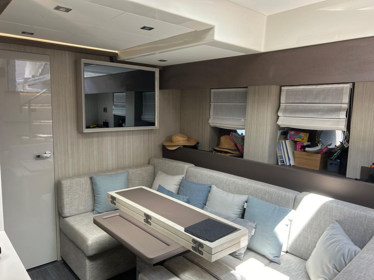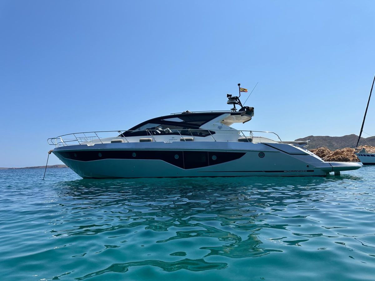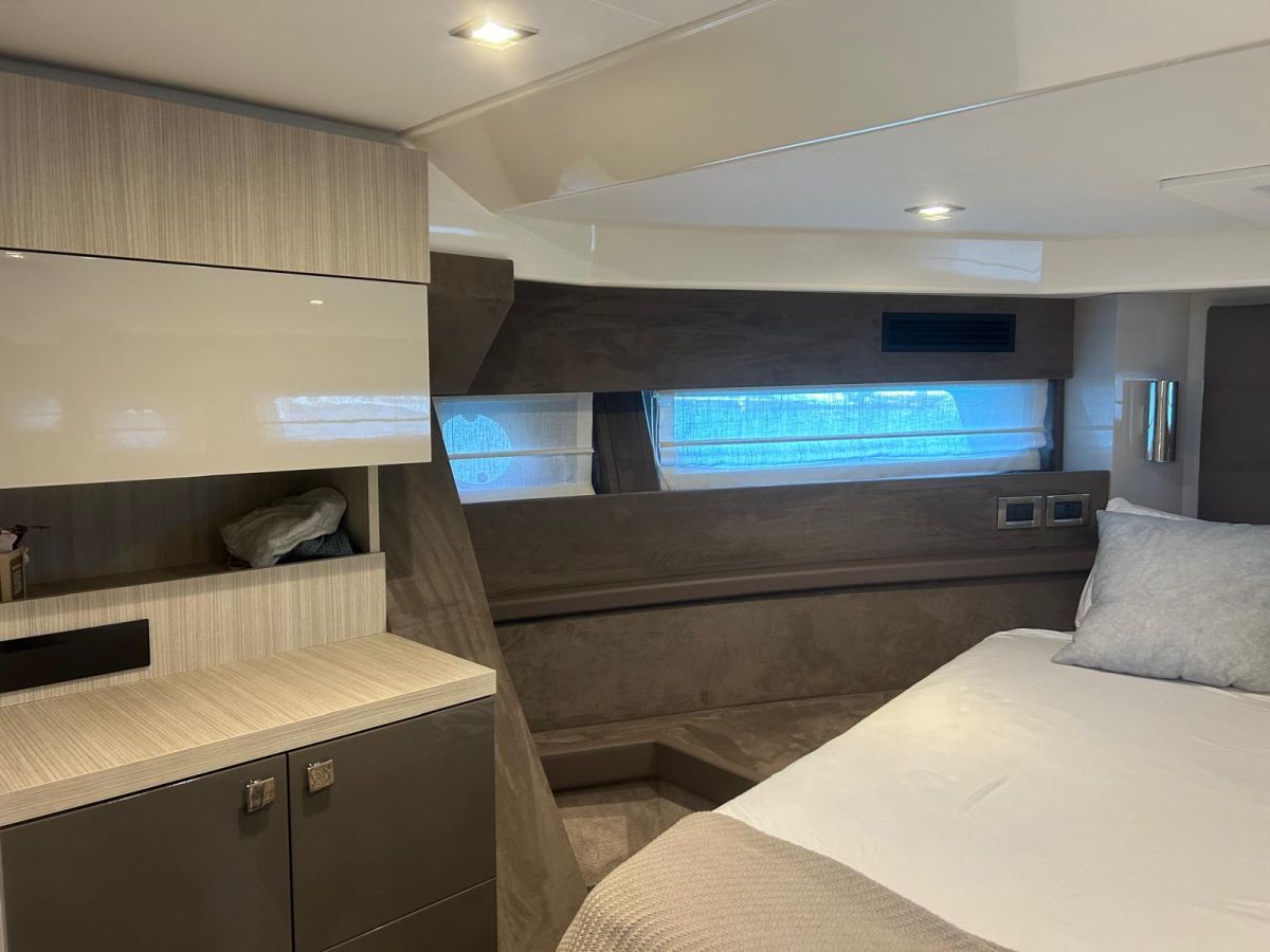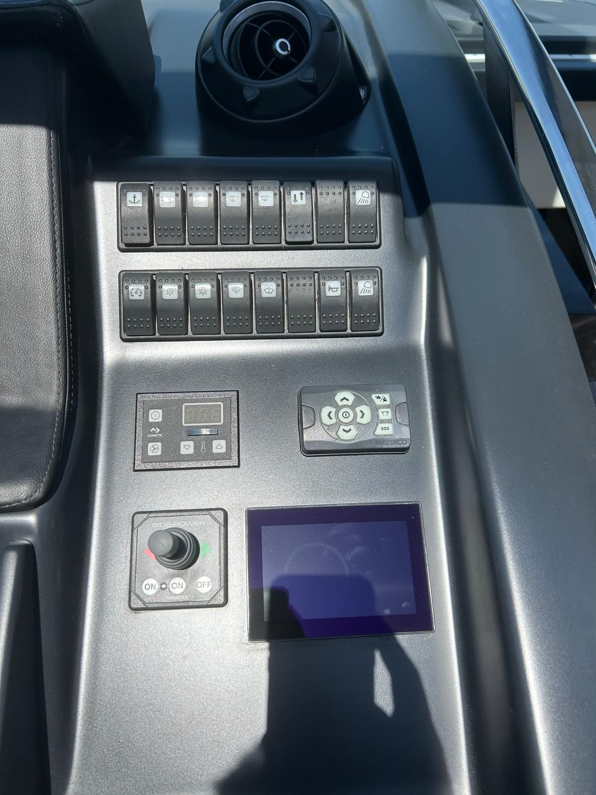 Hard top negro – Kit molinete para varada neumática auxiliar – Sistema de mandos Joystick – Dirección electrónica y mandos motores electrónicos – Aire acondicionado 48.000 BTU en camarotes y 24.000 BTU en bañera, con bomba de calor – Camarote de marinero con WC y lavabo – Capota cámper – Solárium de popa con funda – Cajafuerte electrónica – Correctores de planeada Automatic Trim Control – Hélice de proa – Faro pirata – Suplemento generador de 13 a 20 kW – Frigorífico en bañera 65 l – Barbacoa eléctrica en bañera – Máquina de hielo – Mesa bañera en teka – Luces de proa y luces subacuáticas – Pasarela hidráulica telescópica retráctil – Molinete eléctrico, cadena y ancla Ultramarine de inox – Radio Bluetooth/USB en salón – Radio Bluetooth/USB en cabina armador – Radio Bluetooth/USB en bañera y a proa – Estabilizador giroscópico Seakeeper 6 – Plataforma de popa hidráulica – Bañera, plataforma de popa y trancaniles en teka – Cortina eléctrica parasol de popa – TV LED 28″ en bañera con dispositivo eléctrico retráctil – 2 Molinetes de popa para amarre – Toma de puerto 220 V – Suelo interior de roble – Horno combinado con microondas – Lavavajillas – Encimera vitrocerámica con 4 fuegos – Tapicería exterior Silvertex color plata – Casco, plataforma, parte de la cubierta y garaje de color gris medusa – 2 GPS/Plotter – VHF – Ecosonda (temperatura y profundidad) – Piloto automático – 2 Camarotes dobles y 1 camarote individual – 2 Baños completos – Depósito de aguas negras – Calentador de agua 40 l – Cargador de baterías – Flaps de lamas Interceptor Humphree – Ducha de popa y de proa – Antifouling.