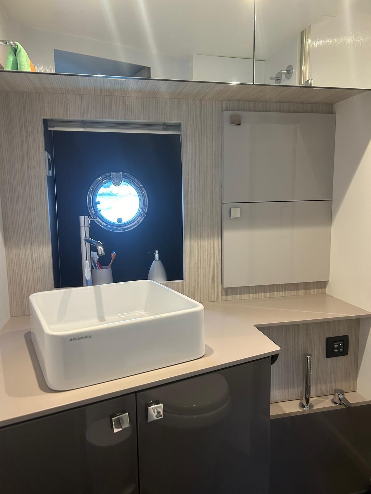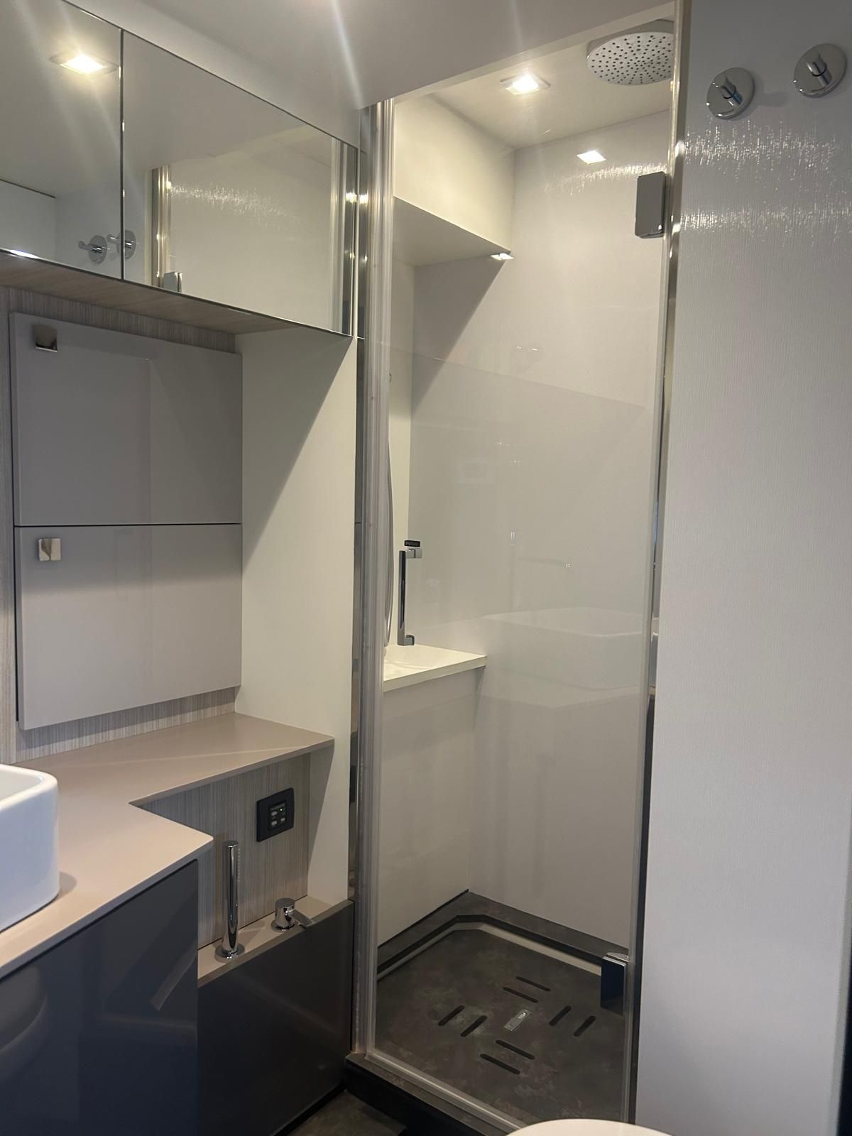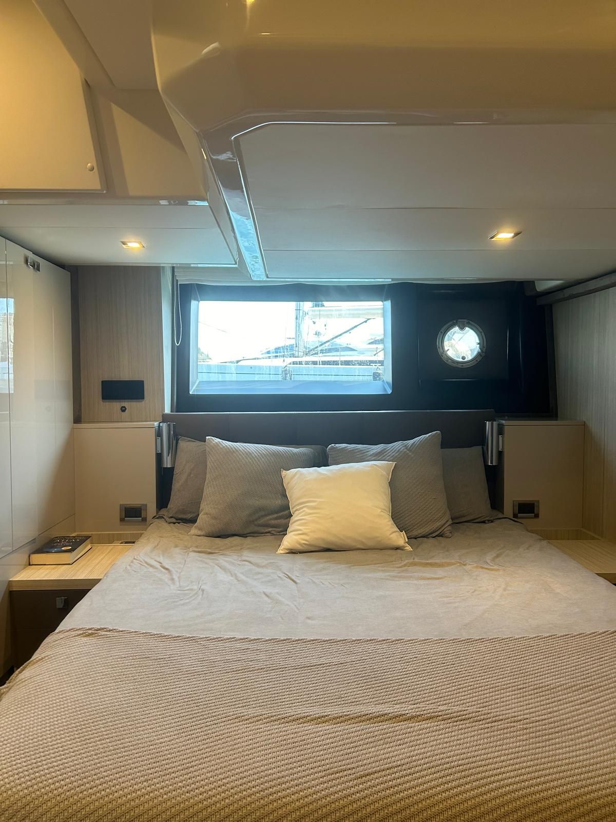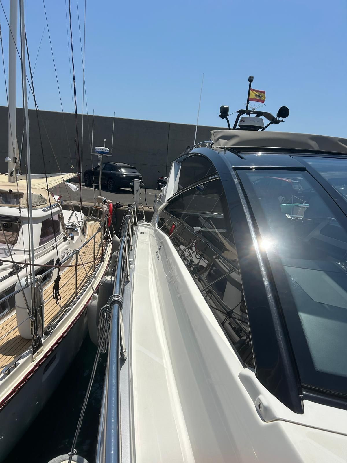 Hard top negro – Kit molinete para varada neumática auxiliar – Sistema de mandos Joystick – Dirección electrónica y mandos motores electrónicos – Aire acondicionado 48.000 BTU en camarotes y 24.000 BTU en bañera, con bomba de calor – Camarote de marinero con WC y lavabo – Capota cámper – Solárium de popa con funda – Cajafuerte electrónica – Correctores de planeada Automatic Trim Control – Hélice de proa – Faro pirata – Suplemento generador de 13 a 20 kW – Frigorífico en bañera 65 l – Barbacoa eléctrica en bañera – Máquina de hielo – Mesa bañera en teka – Luces de proa y luces subacuáticas – Pasarela hidráulica telescópica retráctil – Molinete eléctrico, cadena y ancla Ultramarine de inox – Radio Bluetooth/USB en salón – Radio Bluetooth/USB en cabina armador – Radio Bluetooth/USB en bañera y a proa – Estabilizador giroscópico Seakeeper 6 – Plataforma de popa hidráulica – Bañera, plataforma de popa y trancaniles en teka – Cortina eléctrica parasol de popa – TV LED 28″ en bañera con dispositivo eléctrico retráctil – 2 Molinetes de popa para amarre – Toma de puerto 220 V – Suelo interior de roble – Horno combinado con microondas – Lavavajillas – Encimera vitrocerámica con 4 fuegos – Tapicería exterior Silvertex color plata – Casco, plataforma, parte de la cubierta y garaje de color gris medusa – 2 GPS/Plotter – VHF – Ecosonda (temperatura y profundidad) – Piloto automático – 2 Camarotes dobles y 1 camarote individual – 2 Baños completos – Depósito de aguas negras – Calentador de agua 40 l – Cargador de baterías – Flaps de lamas Interceptor Humphree – Ducha de popa y de proa – Antifouling.