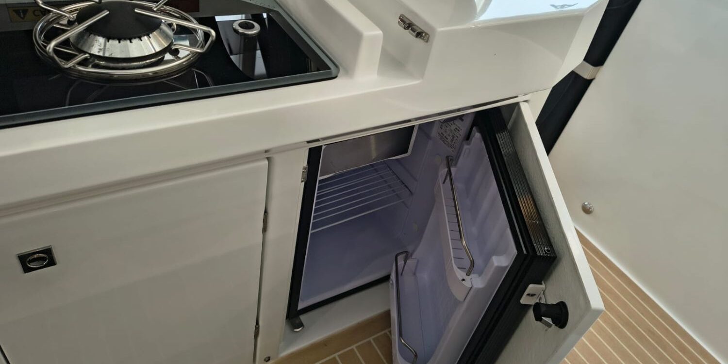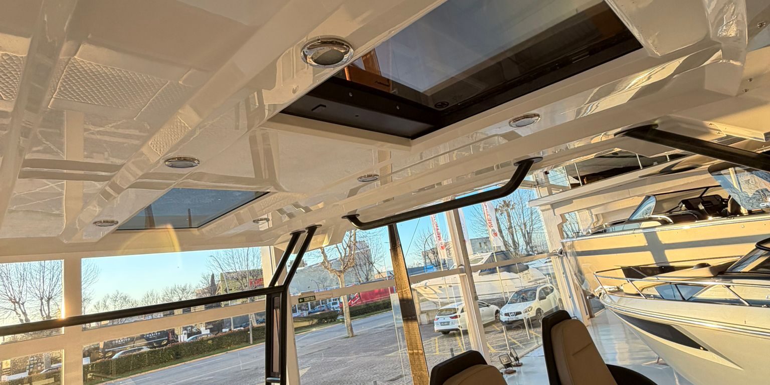 lonas de solárium proa con consola de pilotaje, T top, equipo de música, 2 neveras , defensas DA.