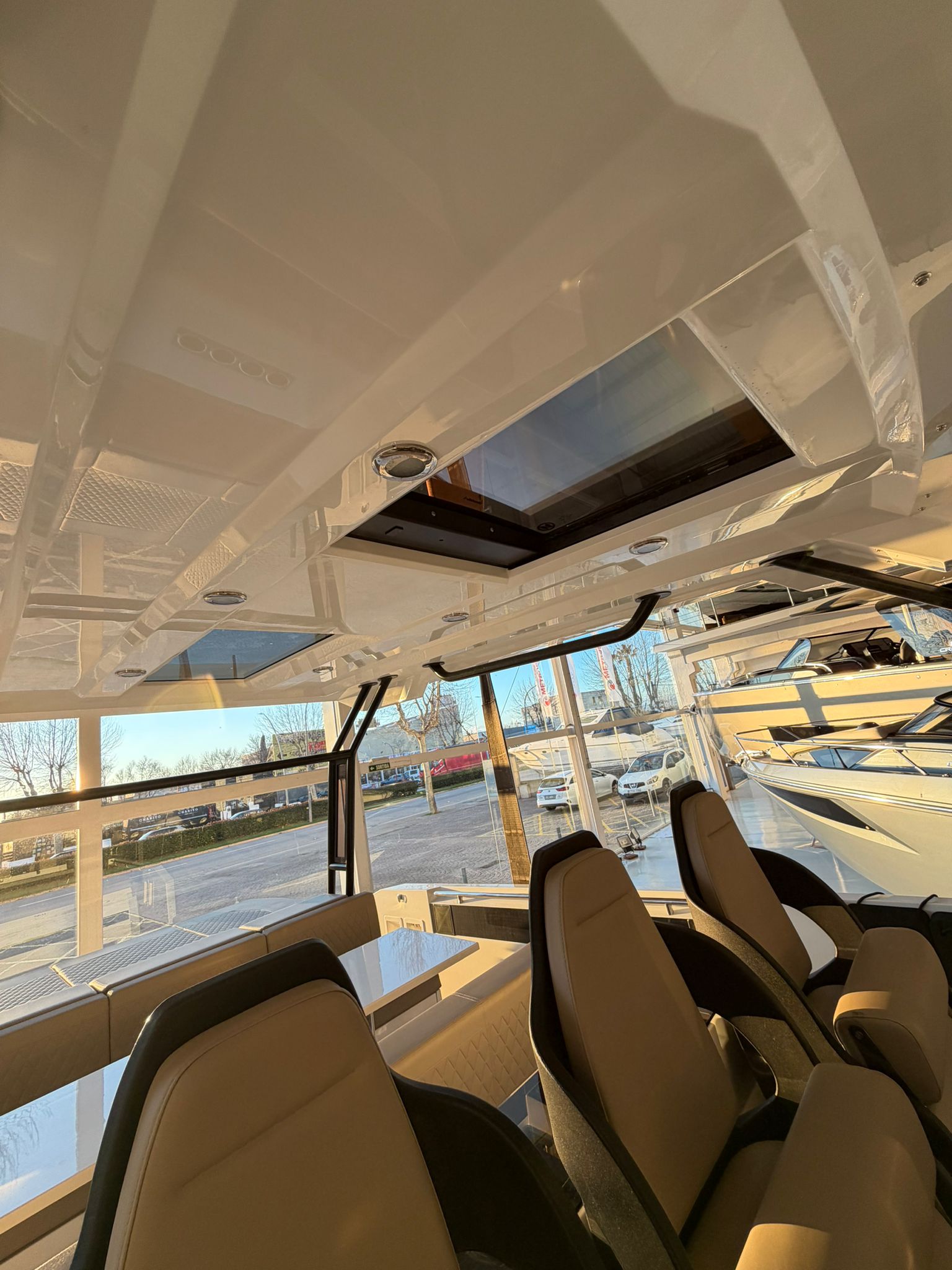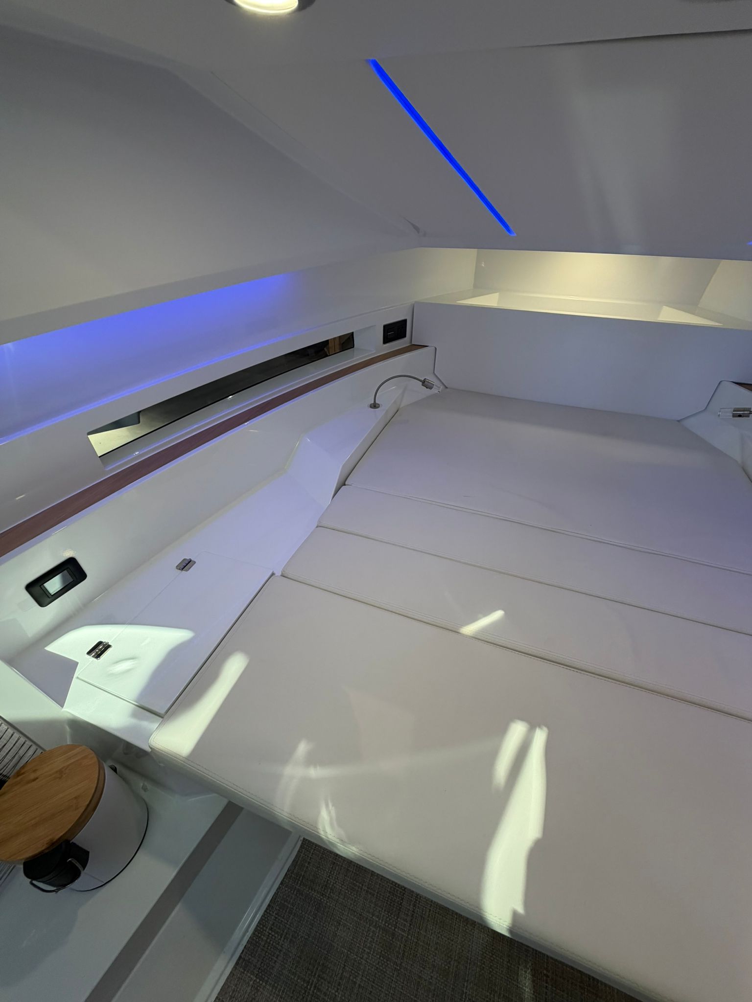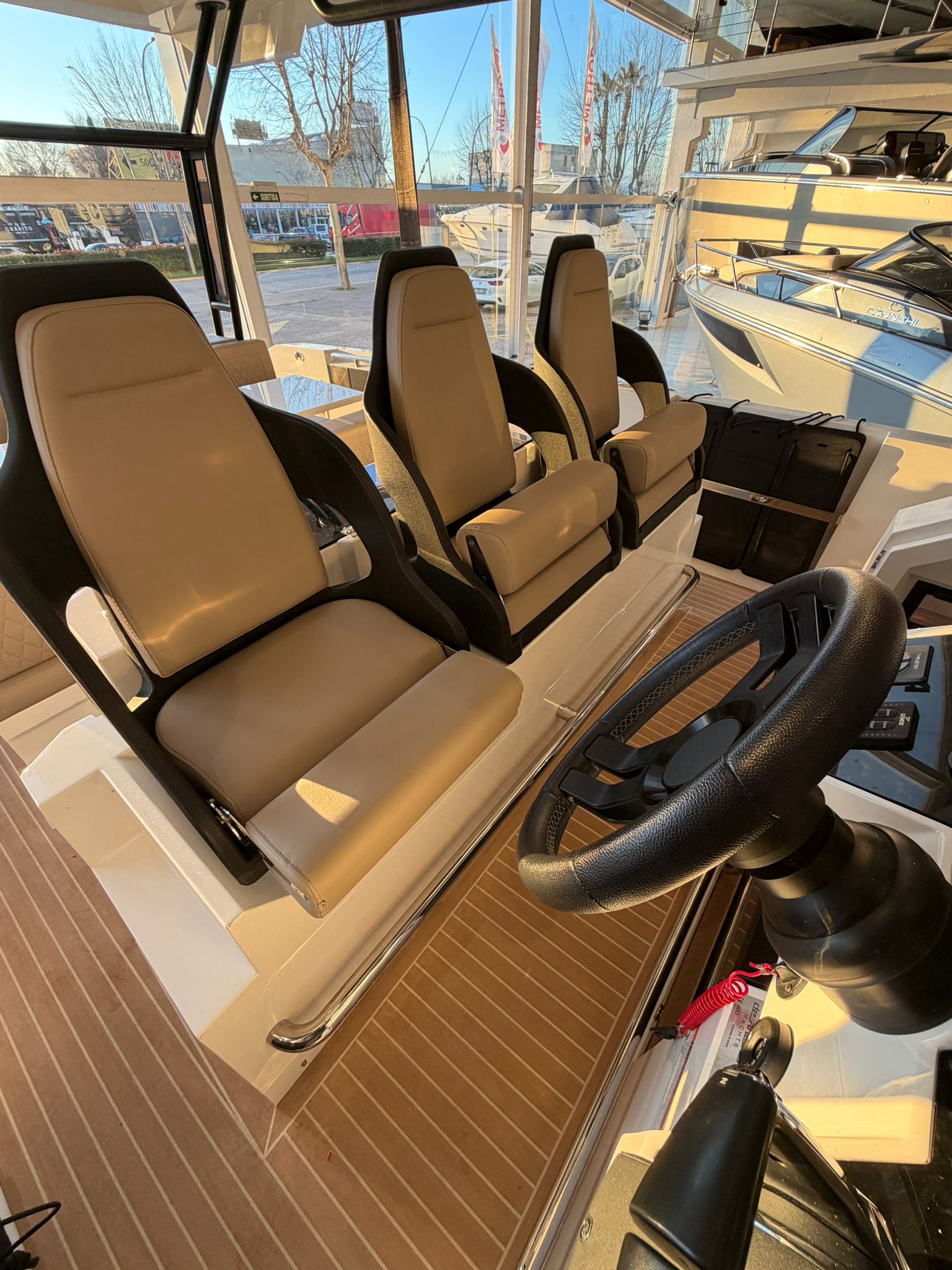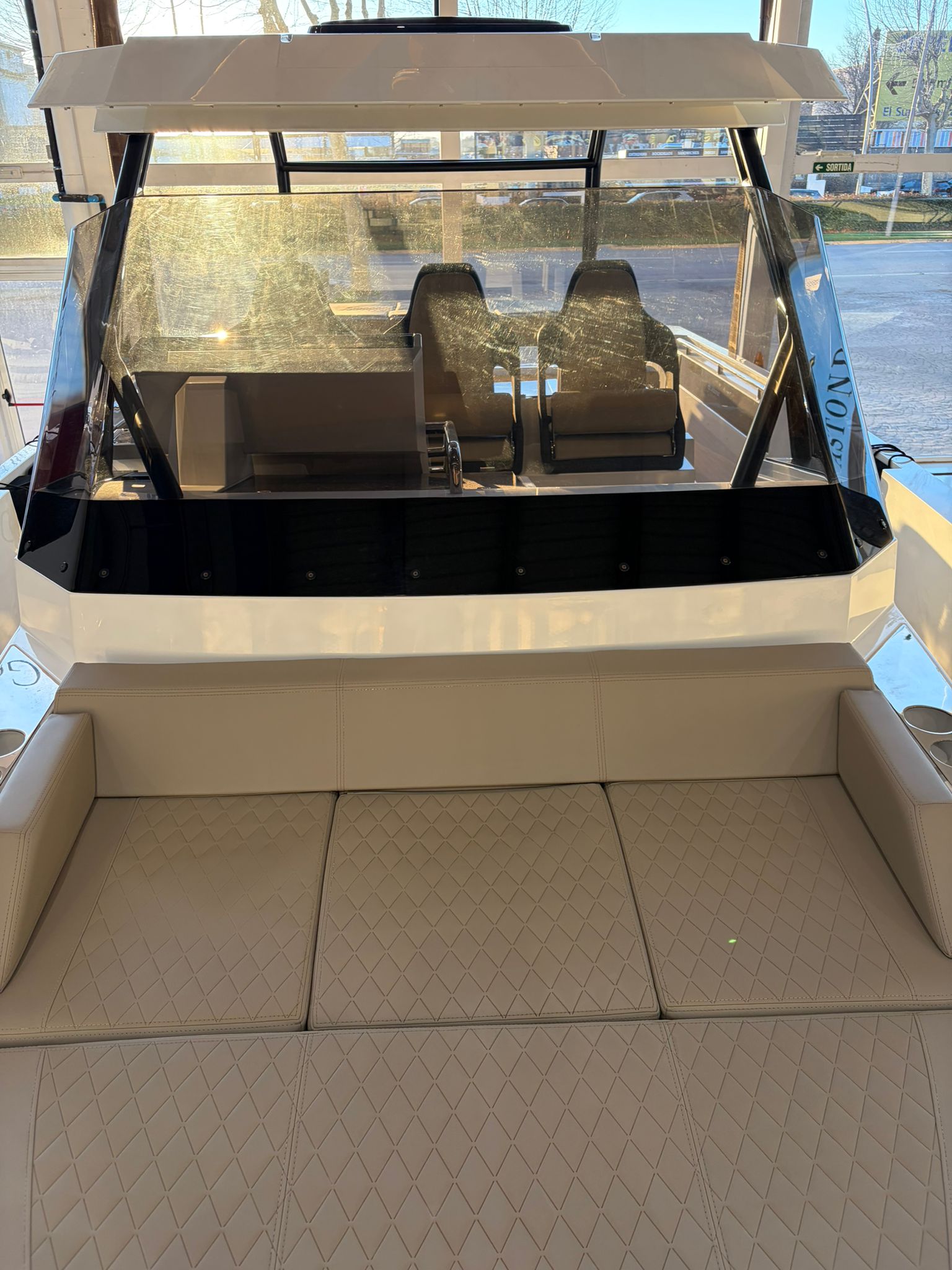 lonas de solárium proa con consola de pilotaje, T top, equipo de música, 2 neveras , defensas DA.