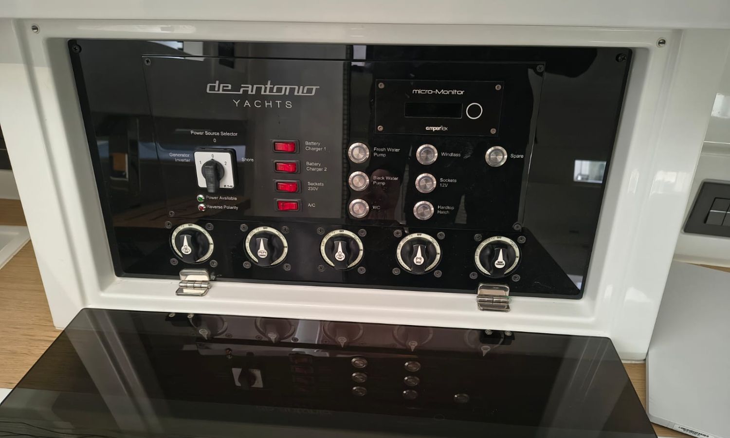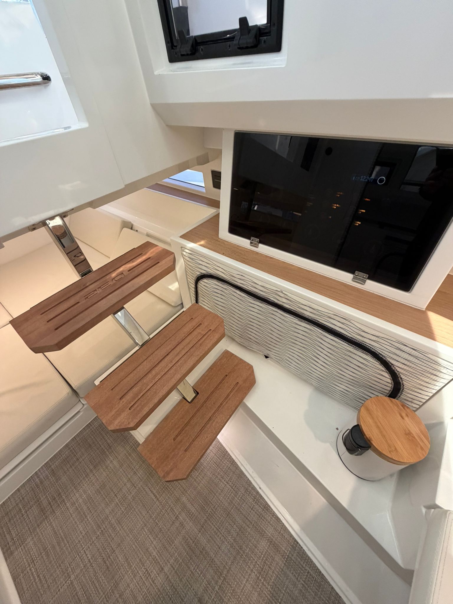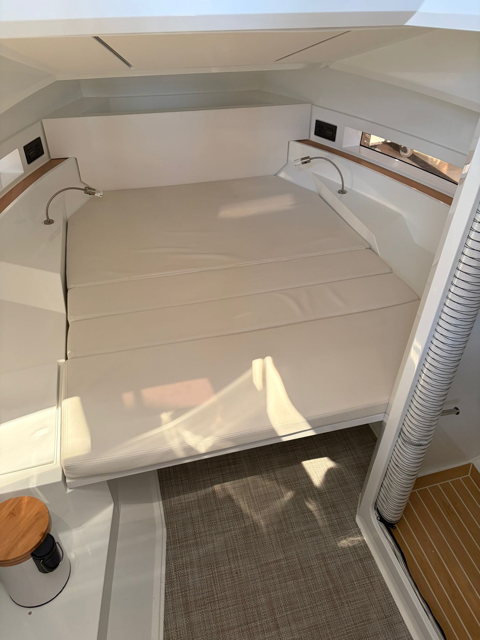 Molinete, Hélice de proa, aire acondicionado, flaps lenco. VHF, GPS/ Sonda Simrad, fogon gas en bañera,