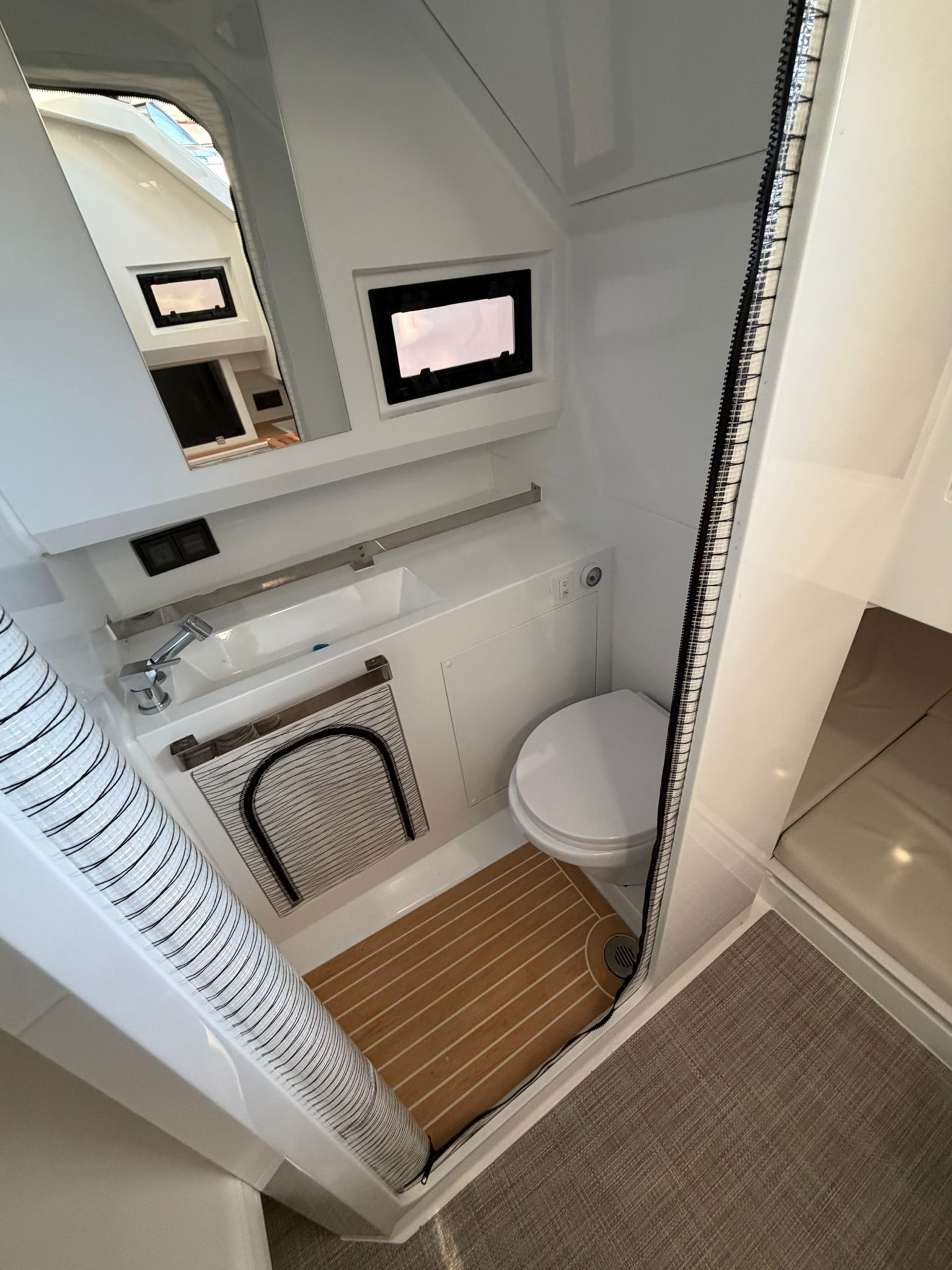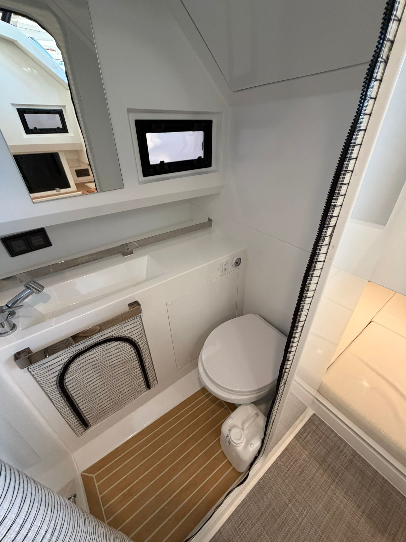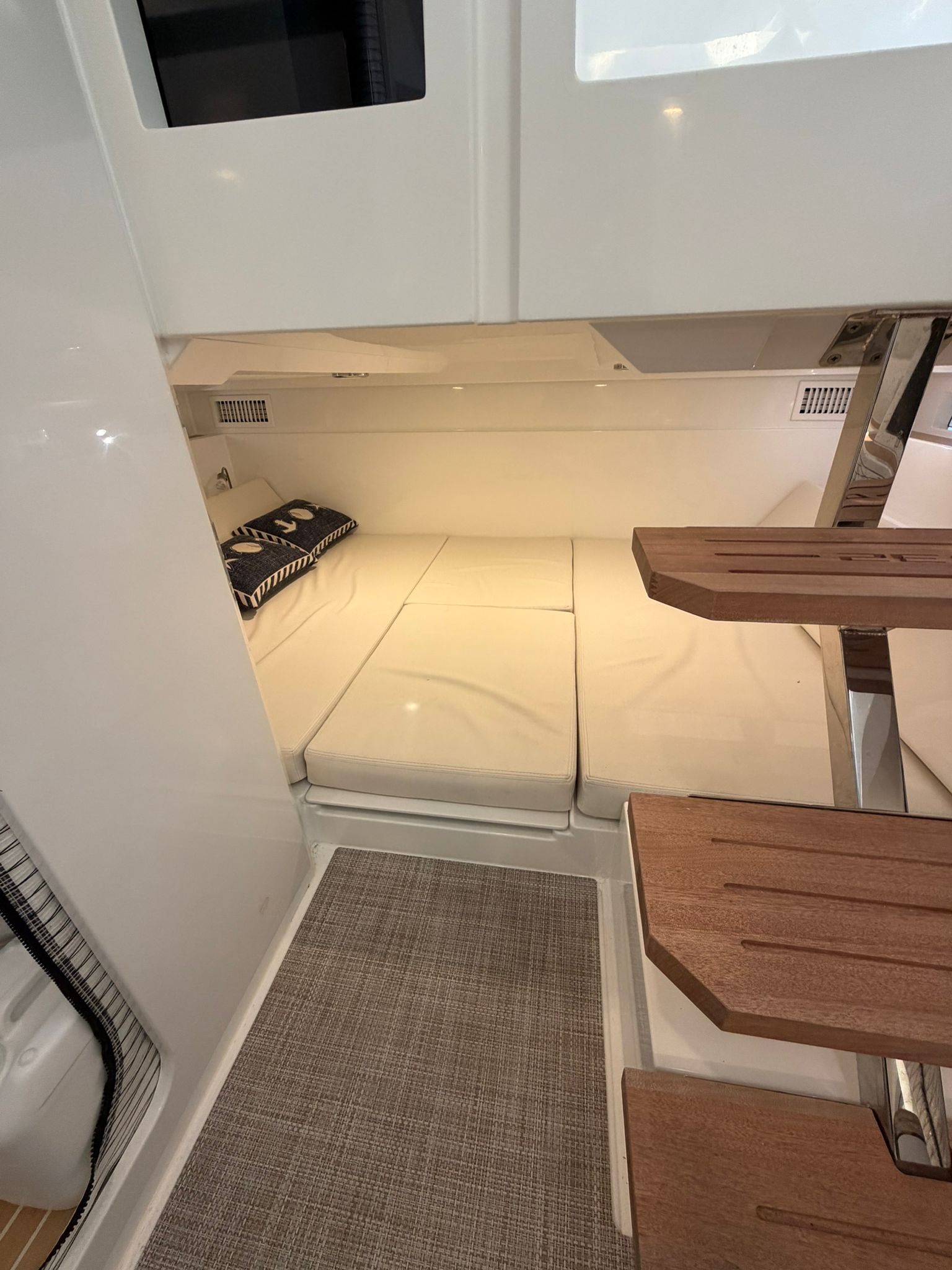 Molinete, Hélice de proa, aire acondicionado, flaps lenco. VHF, GPS/ Sonda Simrad, fogon gas en bañera,