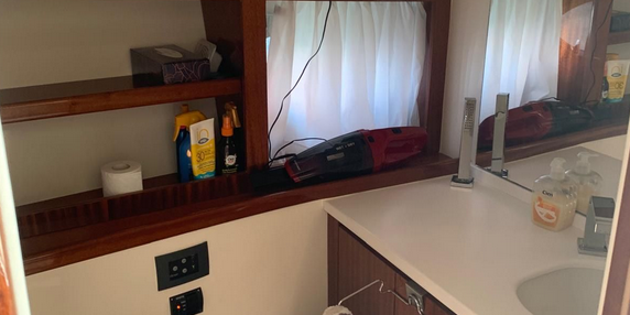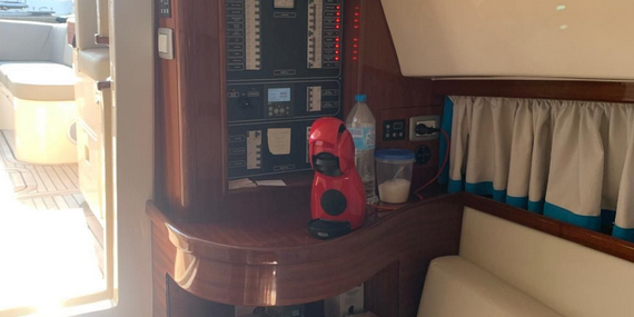 Plataforma de baño con escalera – Ducha en popa – Solárium de proa – Teka – Cargador de baterías – Toma de puerto 220V – Nevera en la bañera – Fregadero – Equipo de audio – Aire acondicionado – Generador – Cocina inducción – WC eléctrico – Molinete de ancla y cadena – Antifouling.
