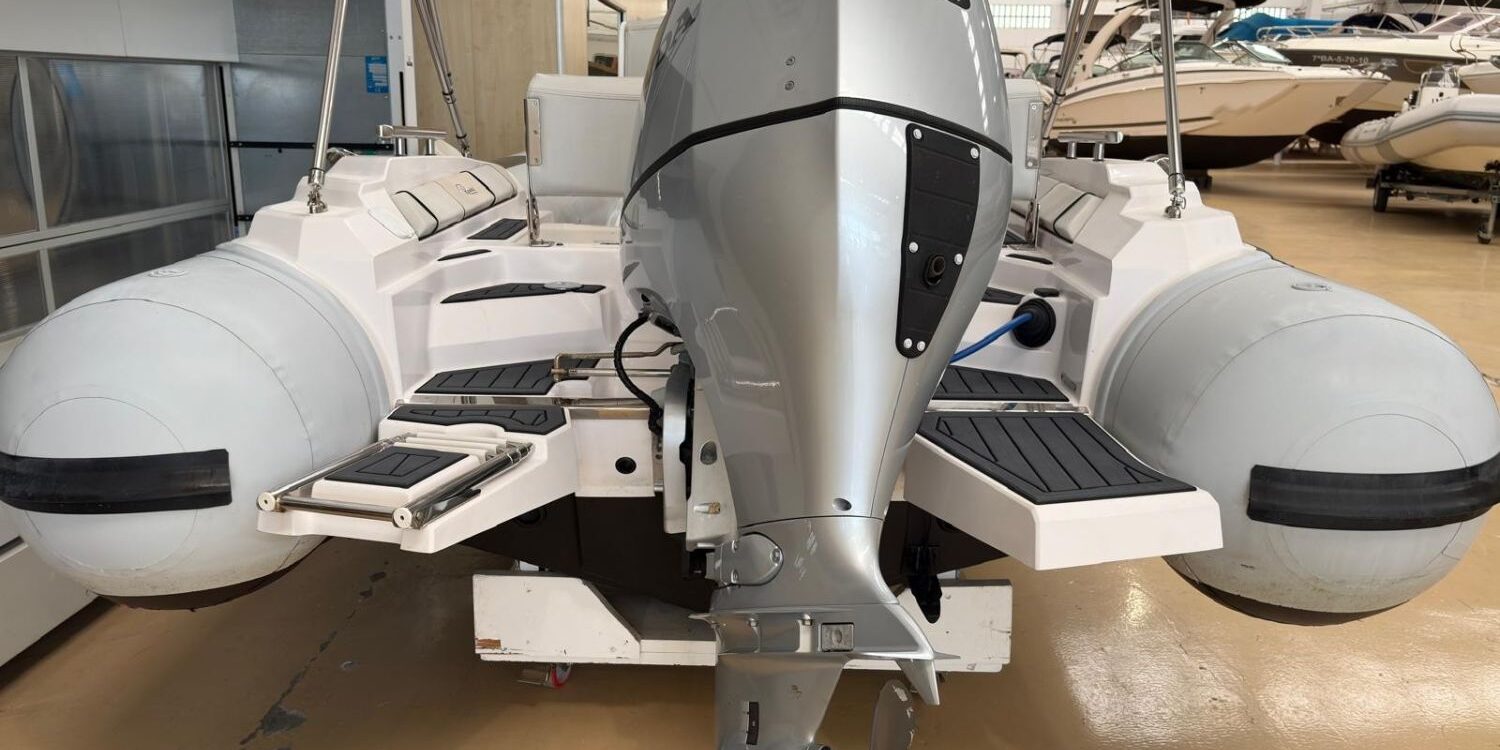 Toldo bimini – Escalera de baño – Ducha en popa – Seadek – Cojines solarium proa – Sonda Garmín – Ancla y cadena – Antifouling.