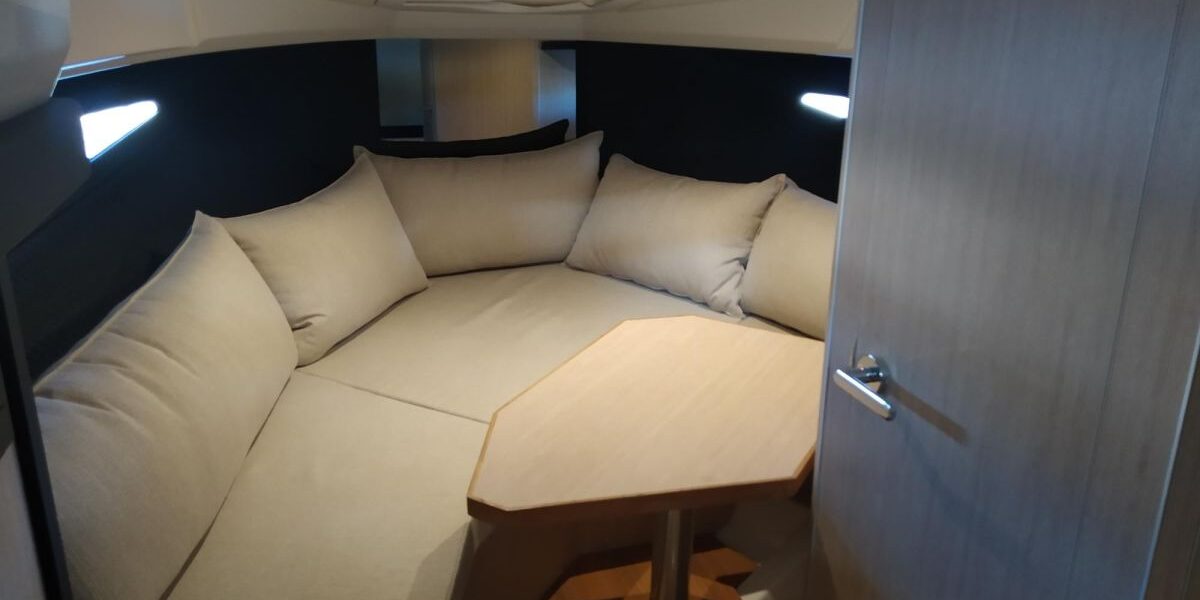 Depósito de aguas negras – Capota sol con arcos y tela – Colchoneta de proa y cobertura – Hélice de proa – Horno microondas con mueble – Nevera bañera 42 l – GPS/Plotter Garmin – Instalación eléctrica 230 V con cargador de baterías, resistencia eléctrica en calentador, reductor presión agua y cable toma puerto 32 A – Luces subacuáticas – Mueble armario con puerta – Multi-instrumentación DTS – Radio Fusion Bluetooth/USB con 2 altavoces, amplificador, subwoofer y mando a distancia en bañera y un altavoz en la cabina – 2 altavoces suplementarios en la proa – Mesa interior convertible en cama – Bañera en teka – Mando a distancia molinete con cuentametros cadena – Lona de fondeo – Molinete eléctrico con cadena y ancla Ultramarine 12 Kg – VHF – Certificado CE y declaración de conformidad – Capota (color alternativo al estándar) – Tapicería exterior Silvertex (color alternativo al estándar) – Casco y cubierta lacados – Transporte astillero a Costa Brava.
