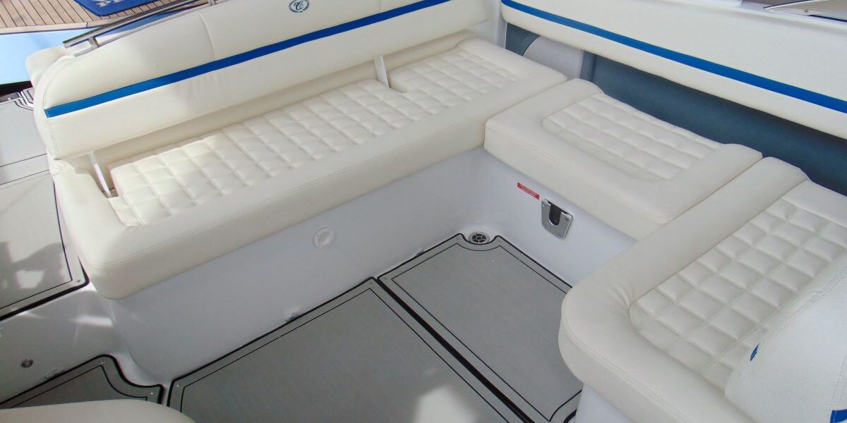 PACIFIC BLUE HULL WITH WHITE LINE (EDGE STRIPE) – PACIFIC BLUE BOW AND COCKPIT COVER – TAIL POSITION INDICATOR – STAINLESS STEEL BOW LIGHTS – ELECTRICALLY OPENING ENGINE ROOM HOOD – HATCH IN BATHROOM – TRITON WAKEBOARD HOLDERS – SHOWER ON BATHING PLATFORM – COCKPIT TABLE – COCKPIT INTERIOR LED LIGHTS – TOILET SINK – SYNTHETIC MATERIAL ON COCKPIT FLOOR IN GREY – SUNBATHING EXTENSION ON STERN – BATTERY CHARGER – BATTERY CHARGER – BATTERY CHARGER – BATTERY CHARGER – BATTERY CHARGER – BATTERY CHARGER – BATTERY CHARGER – BATTERY CHARGER – BATTERY CHARGER – BATTERY CHARGER – BATTERY CHARGER – BATTERY CHARGER CENTRAL BOW CUSHION SUPPLEMENT – COCKPIT TABLE – INTERIOR LED COCKPIT LIGHTS – PICA IN TOILET – SYNTHETIC MATERIAL ON COCKPIT FLOOR GREY COLOUR – STERN SUNDECK EXTENSION – BATTERY CHARGER – AUTOMATIC FIRE EXTINGUISHING SYSTEM – ELECTRIC WINDLASS WITH ANCHOR AND CHAIN – DUAL BATTERY DISCONNECTOR – TRANSPORT SHIPYARD – COASTER – BARGE.