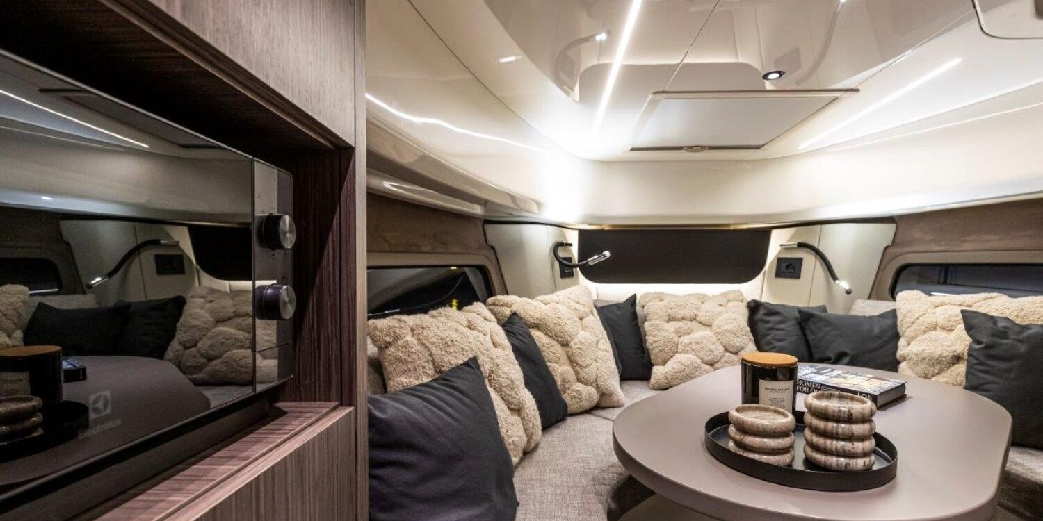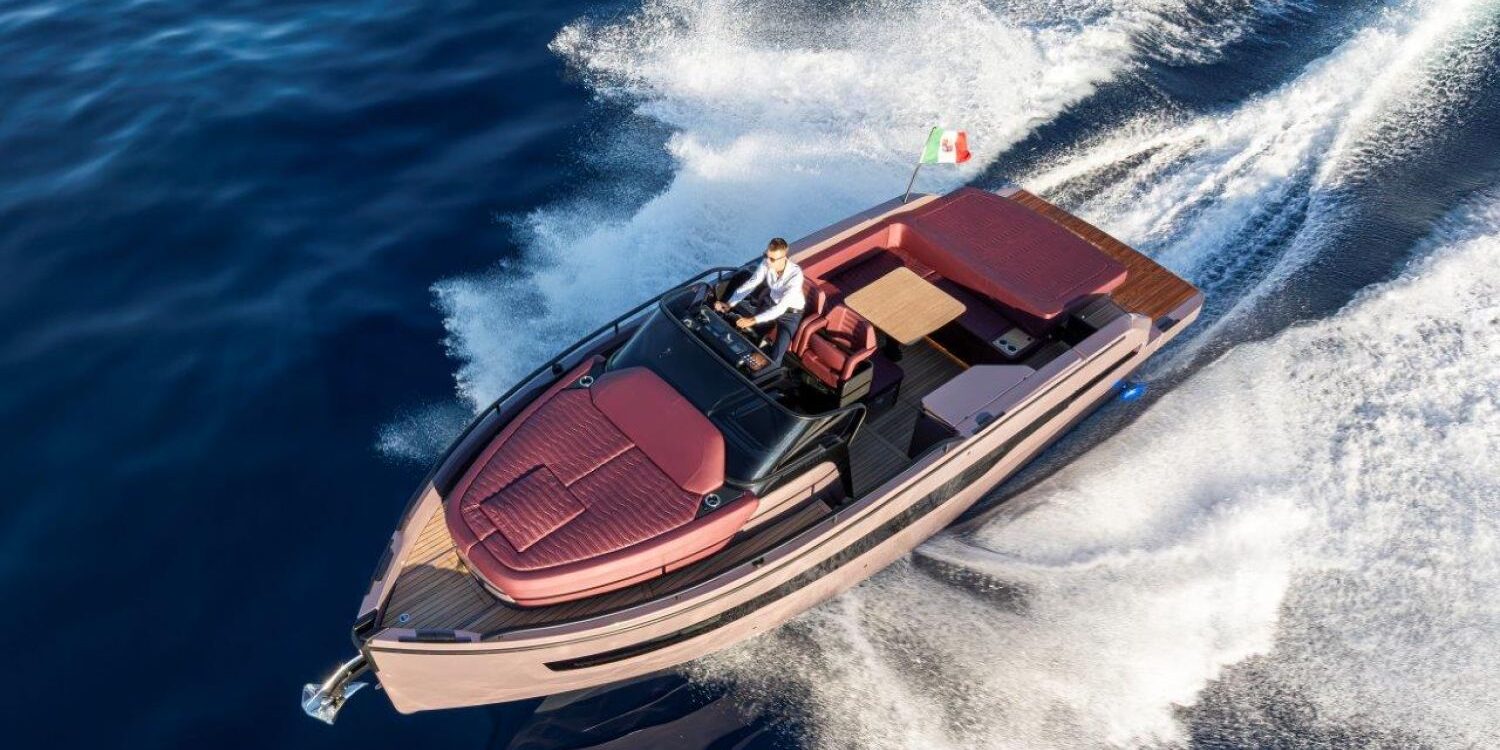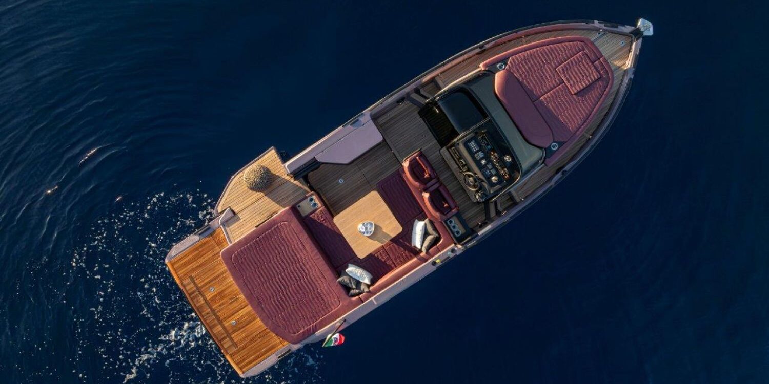 Joystick + Cruise control + Single lever control + Trip computer + Power trim assistance + Joystick docking – Black water tank – Black antifouling – Covers for dashboard and pilot and co-pilot seats – Bow mat with cover – Bow thruster – 90-liter cabin refrigerator – 35-liter cockpit refrigerator – 3 underwater lights – 6 fenders and covers – Teak surface on side steps – Teak stern platform – Teak at cockpit entrance and on folding side – Teak cockpit in steering area – Anchor cover – 800 W electric windlass, 50 m chain and 16 kg Ultramarine stainless steel anchor – Copy of CE certificate and declaration of conformity – Fender covers (alternative color to standard) – Dark Grey 11.11 wood interiors – Oak floorboards – Silvertex exterior upholstery (alternative color to standard) – Glossy protective coating for teak cockpit table – Preparation, launch, delivery, and sea trial – Transport from shipyard to Costa Brava.