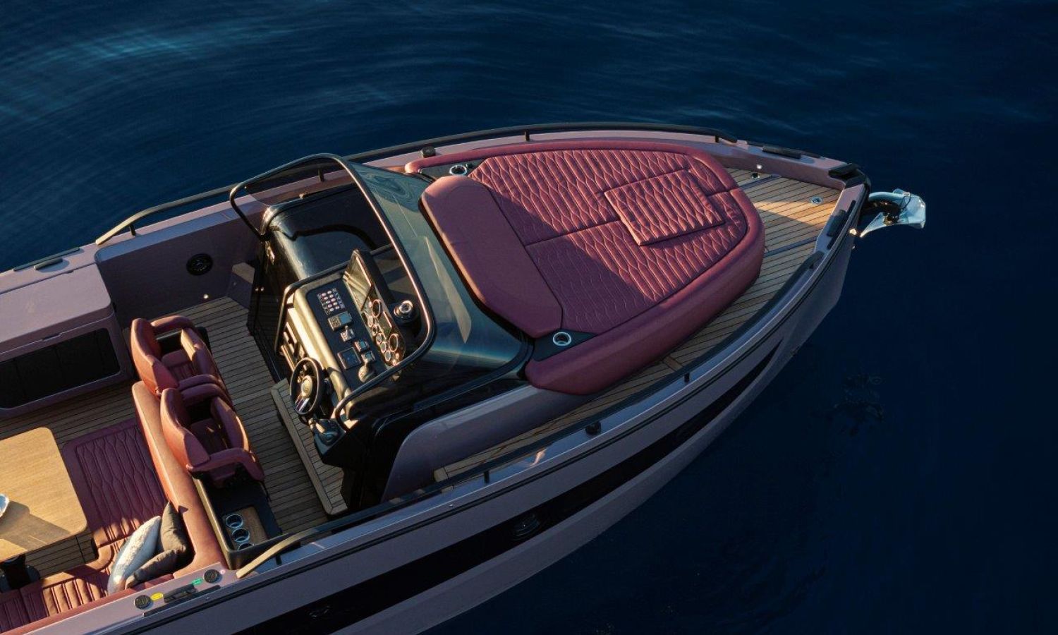 Joystick + Cruise control + Single lever control + Trip computer + Power trim assistance + Joystick docking – Black water tank – Black antifouling – Covers for dashboard and pilot and co-pilot seats – Bow mat with cover – Bow thruster – 90-liter cabin refrigerator – 35-liter cockpit refrigerator – 3 underwater lights – 6 fenders and covers – Teak surface on side steps – Teak stern platform – Teak at cockpit entrance and on folding side – Teak cockpit in steering area – Anchor cover – 800 W electric windlass, 50 m chain and 16 kg Ultramarine stainless steel anchor – Copy of CE certificate and declaration of conformity – Fender covers (alternative color to standard) – Dark Grey 11.11 wood interiors – Oak floorboards – Silvertex exterior upholstery (alternative color to standard) – Glossy protective coating for teak cockpit table – Preparation, launch, delivery, and sea trial – Transport from shipyard to Costa Brava.