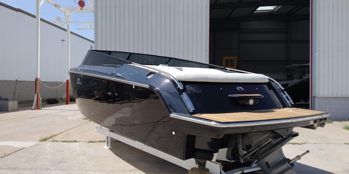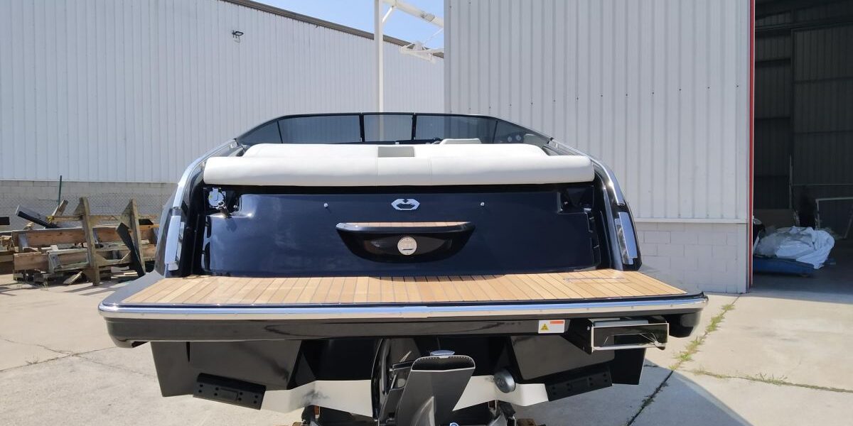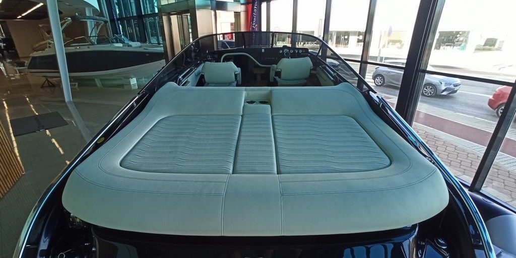 Black water tank – Black micro-perforated sun canopy – Bow thruster with automatic fire extinguisher – Cabin fridge 42 l – Electrical system 230 V with battery charger and shore power socket with connection cable – 6 fenders and covers – Radio Fusion Bluetooth/USB – Cockpit table with cover – Teak on the full foredeck – Cockpit teak – Anchor canvas – Electric windlass with anchor and chain – Electric toilet with cover – Teak on the full foredeck – Fender covers in alternative colour to standard – Silvertex exterior upholstery – Hull and deck covers Teak cockpit – Anchor canvas – Electric windlass with anchor and chain – Electric marine toilet with cover – Fender covers in alternative colour to standard – Silvertex exterior upholstery – Hull and deck in lacquered colour – CE certificate and declaration of conformity – Transport from shipyard to Costa Brava.