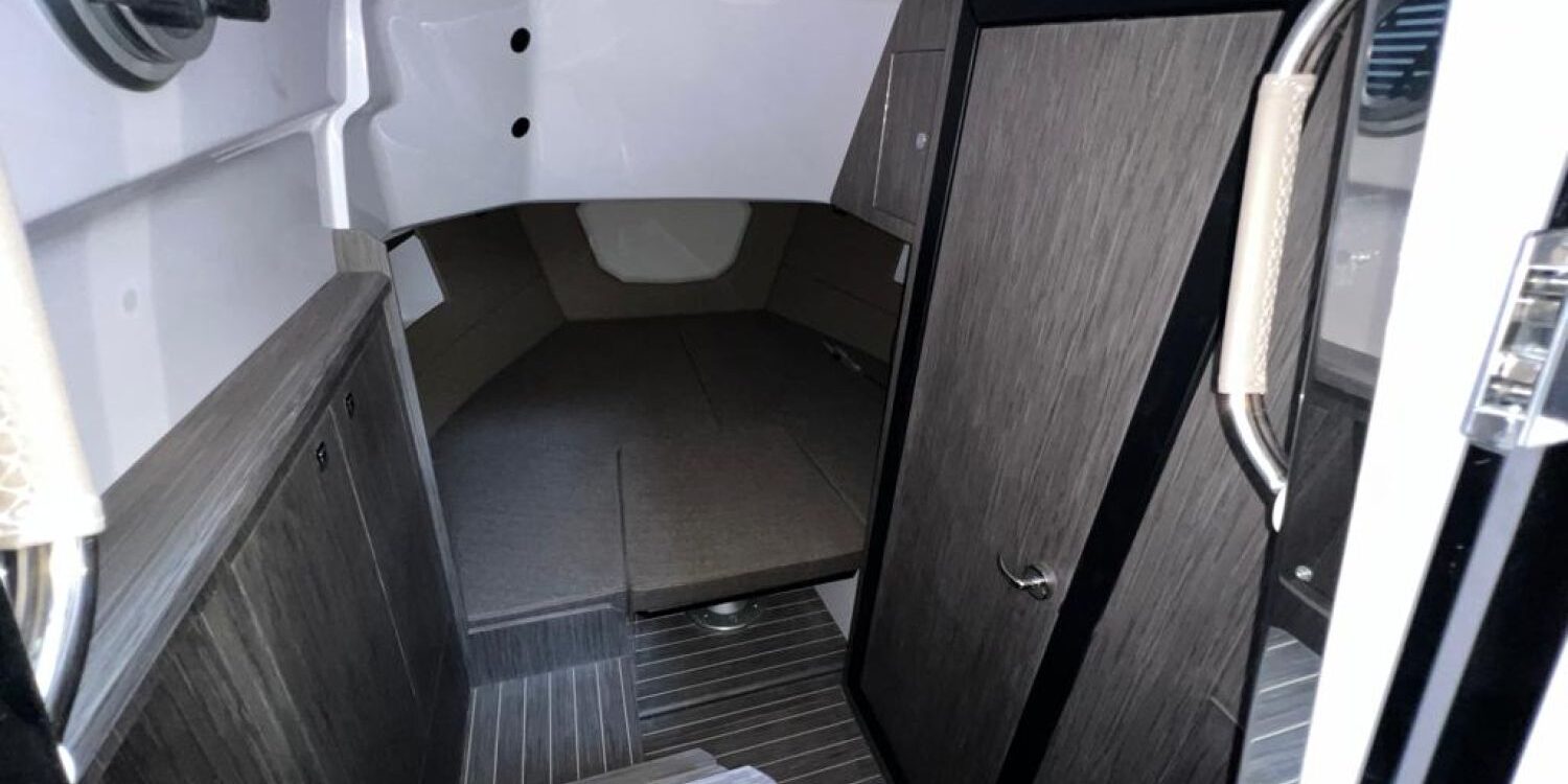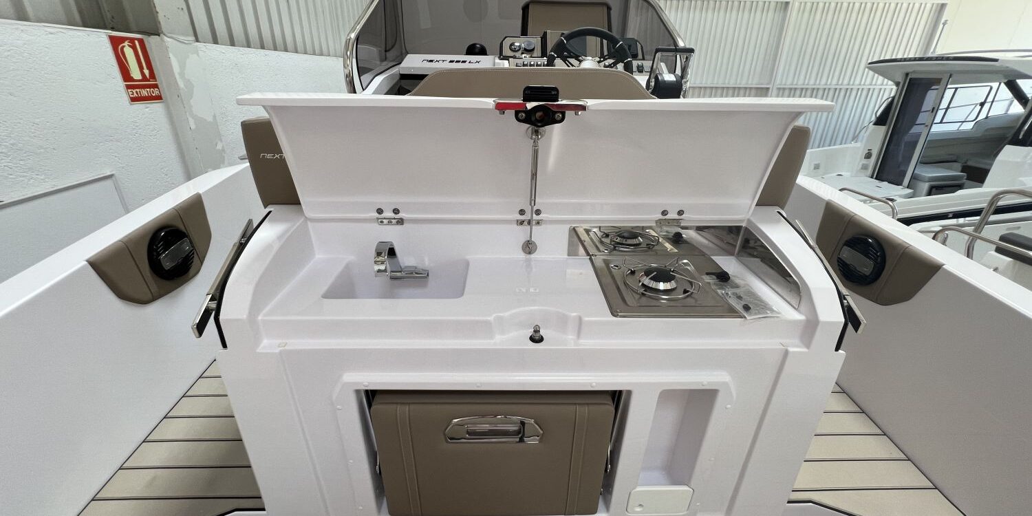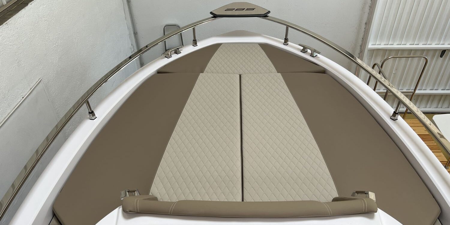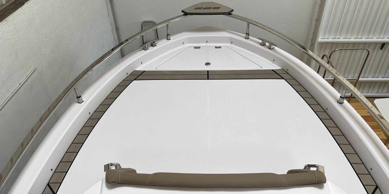 Odometer – Bow thruster – Microwave oven – Installation for additional battery – Ski pole kit – 220 V port socket – Foldable rear seat – Foldable side seats – Anchor cover – Sun awning – Pre-rigging and Honda propellers – Twin engine mounting – Transport from shipyard to Costa Brava.