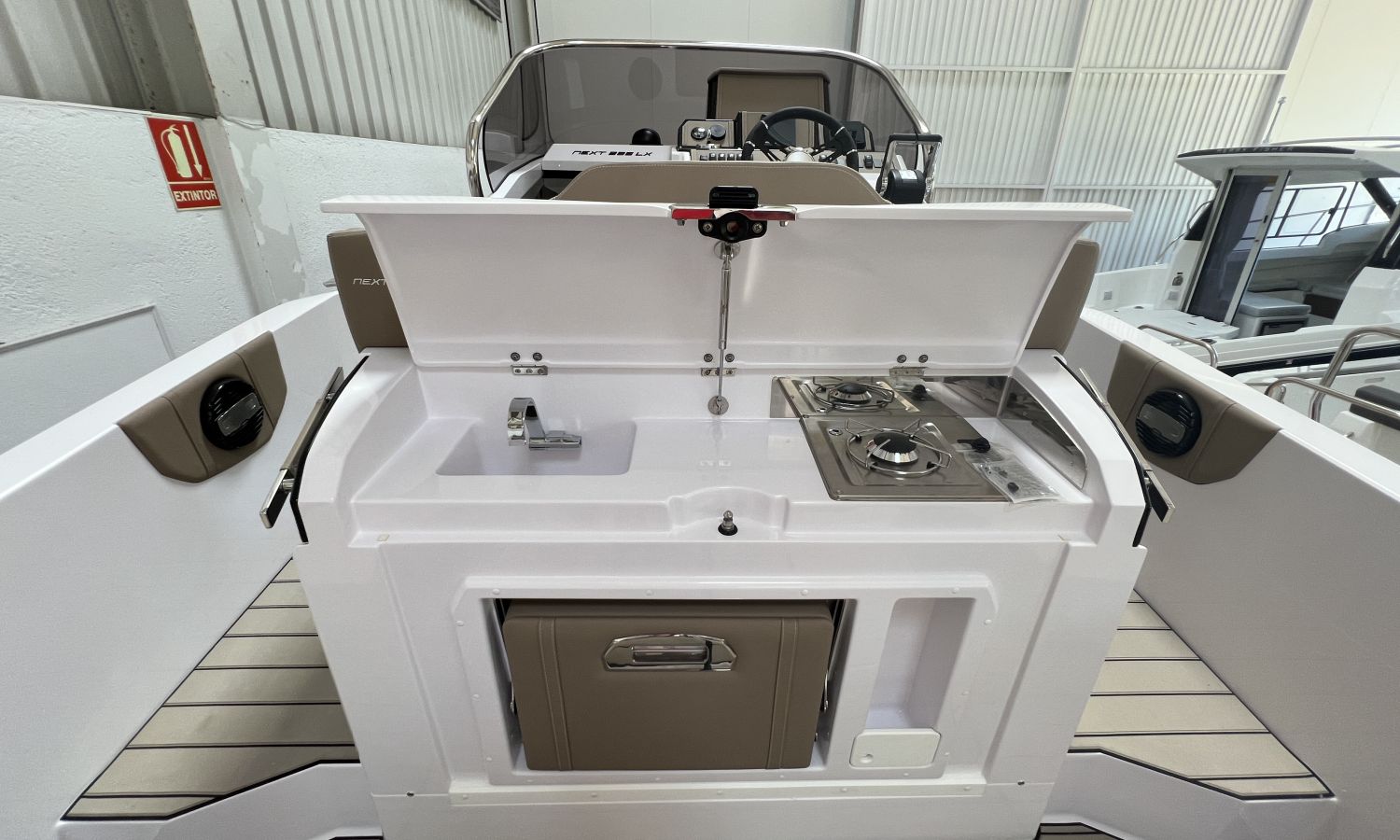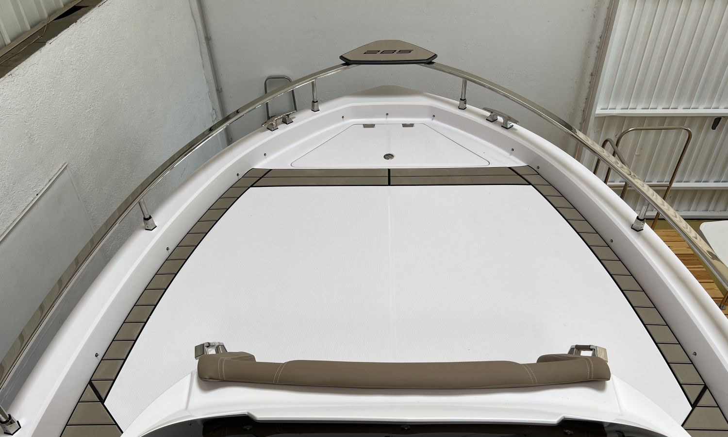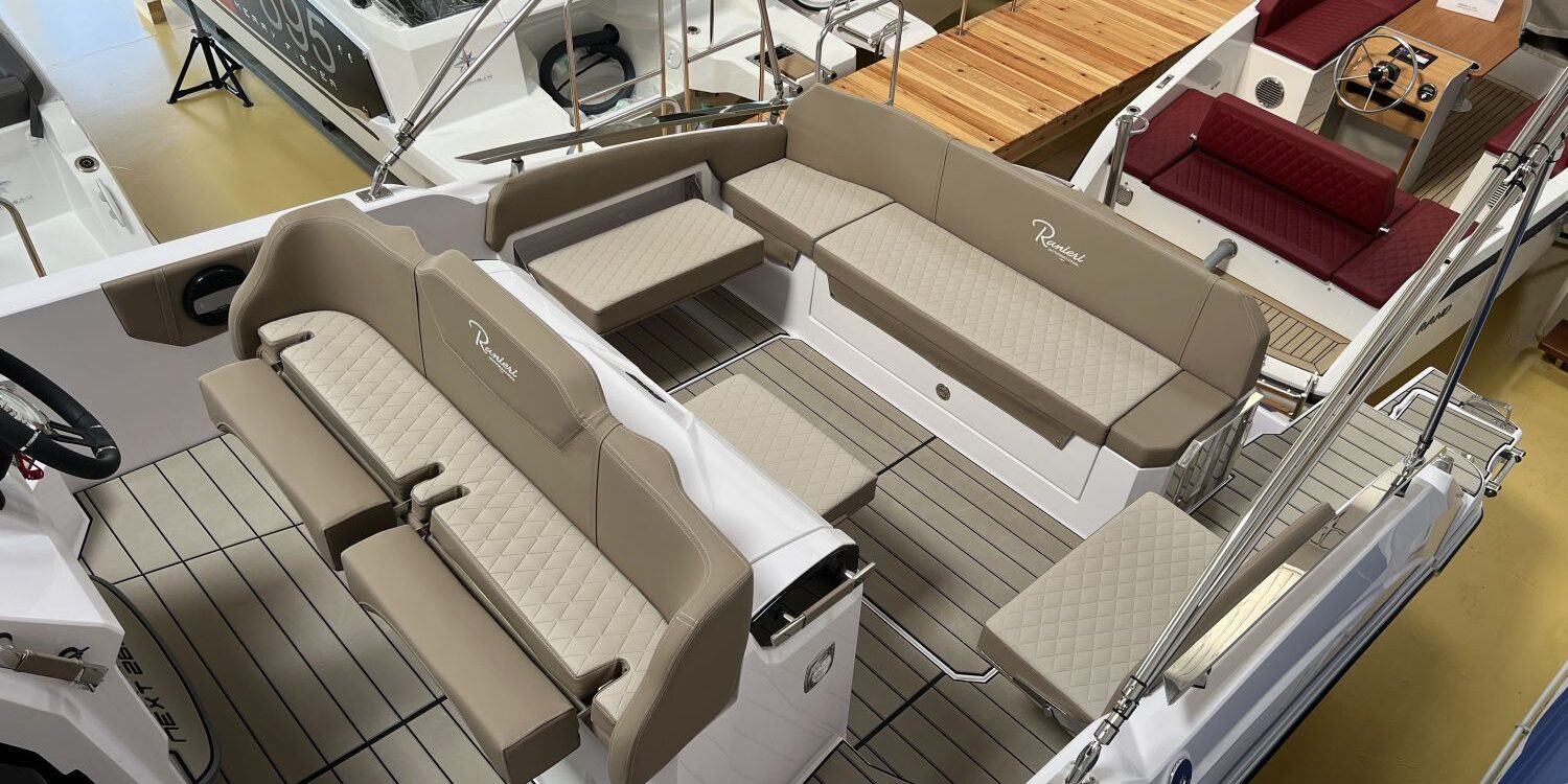 Odometer – Bow thruster – Microwave oven – Installation for additional battery – Ski pole kit – 220 V port socket – Foldable rear seat – Foldable side seats – Anchor cover – Sun awning – Pre-rigging and Honda propellers – Twin engine mounting – Transport from shipyard to Costa Brava.