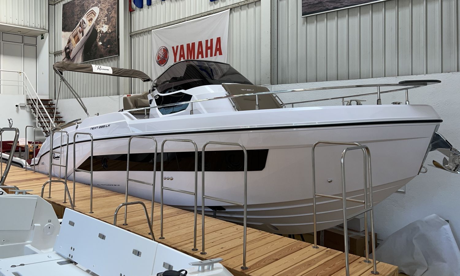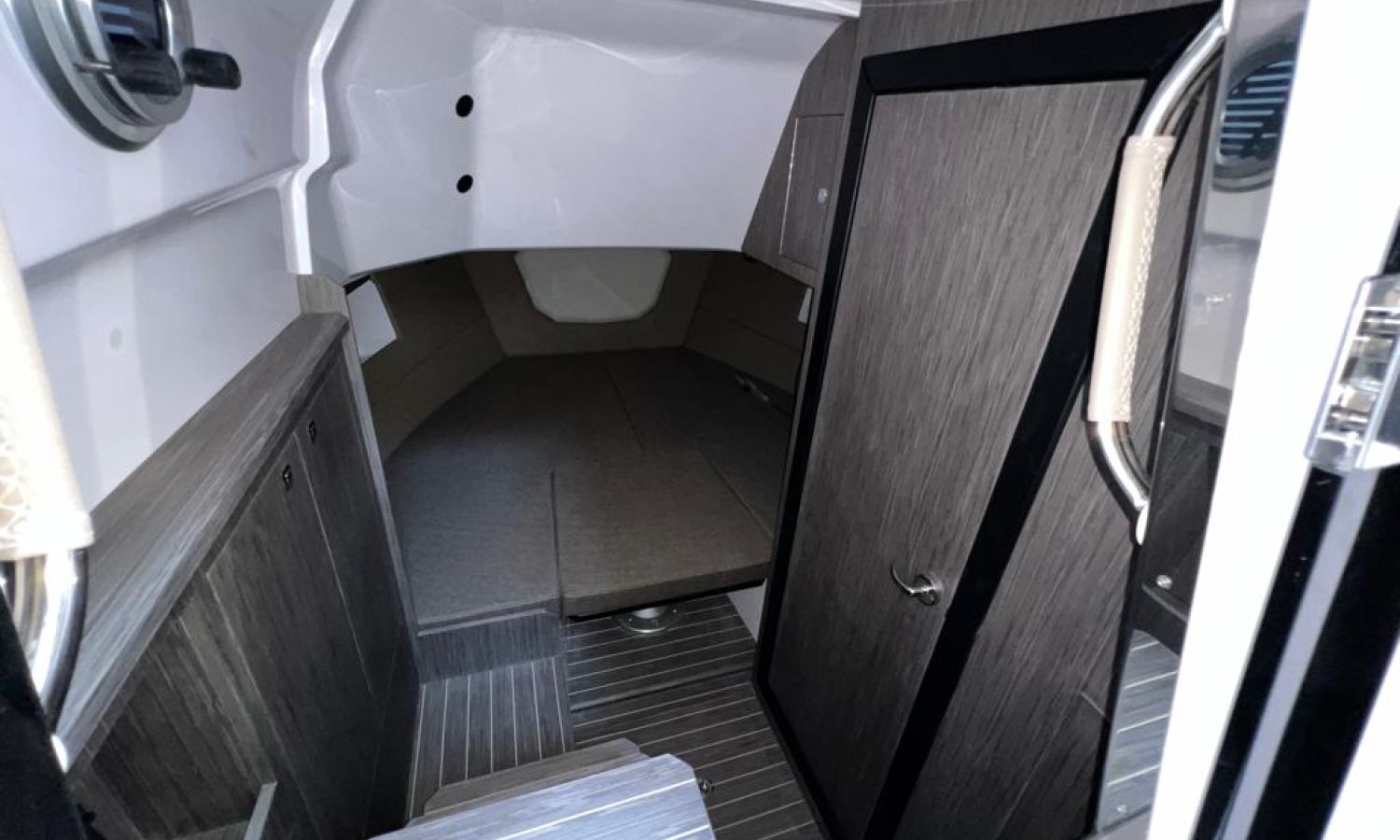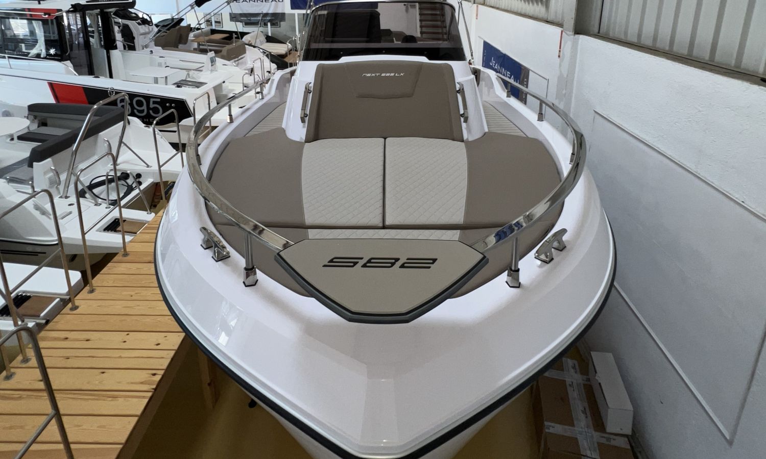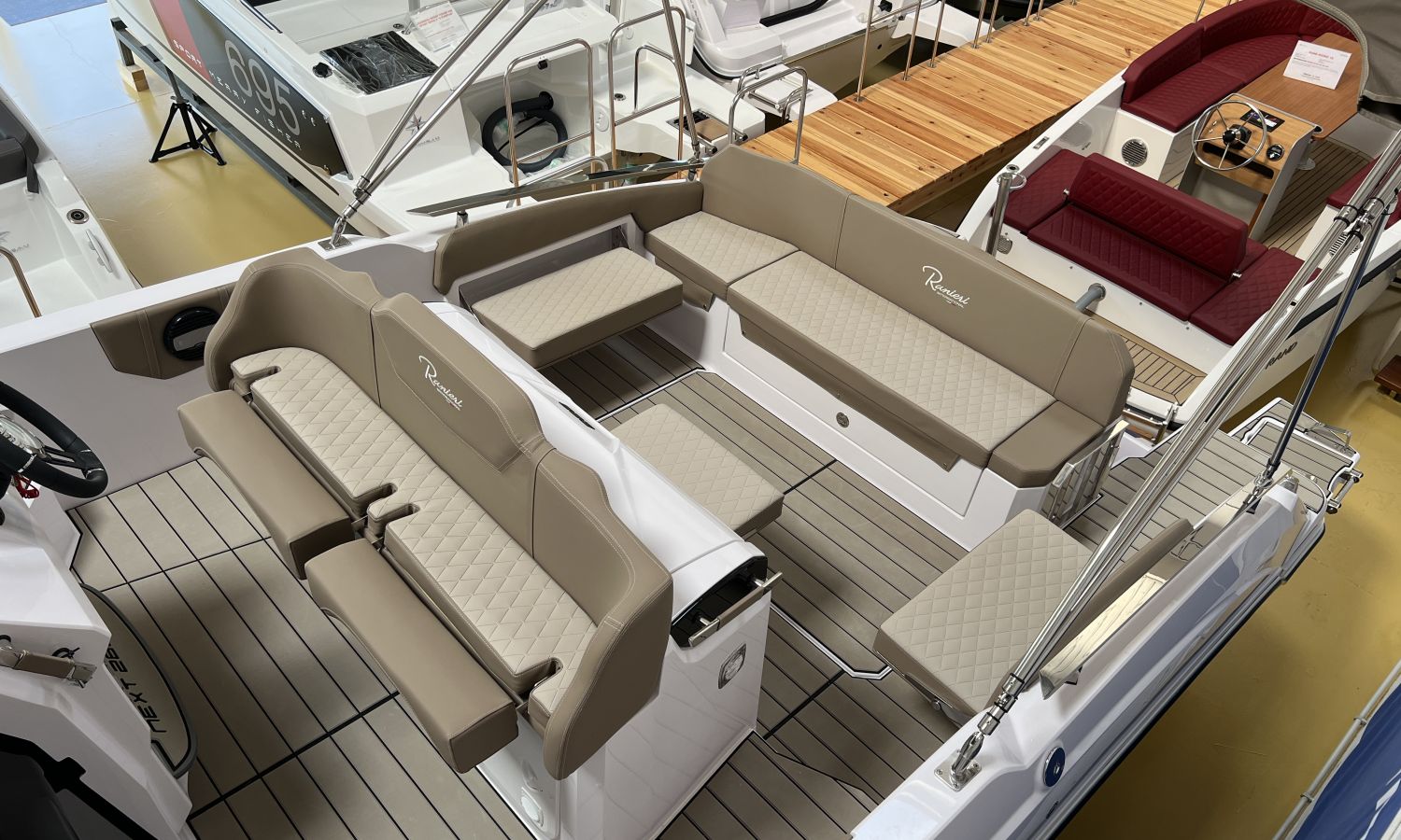 Odometer – Bow thruster – Microwave oven – Installation for additional battery – Ski pole kit – 220 V port socket – Foldable rear seat – Foldable side seats – Anchor cover – Sun awning – Pre-rigging and Honda propellers – Twin engine mounting – Transport from shipyard to Costa Brava.